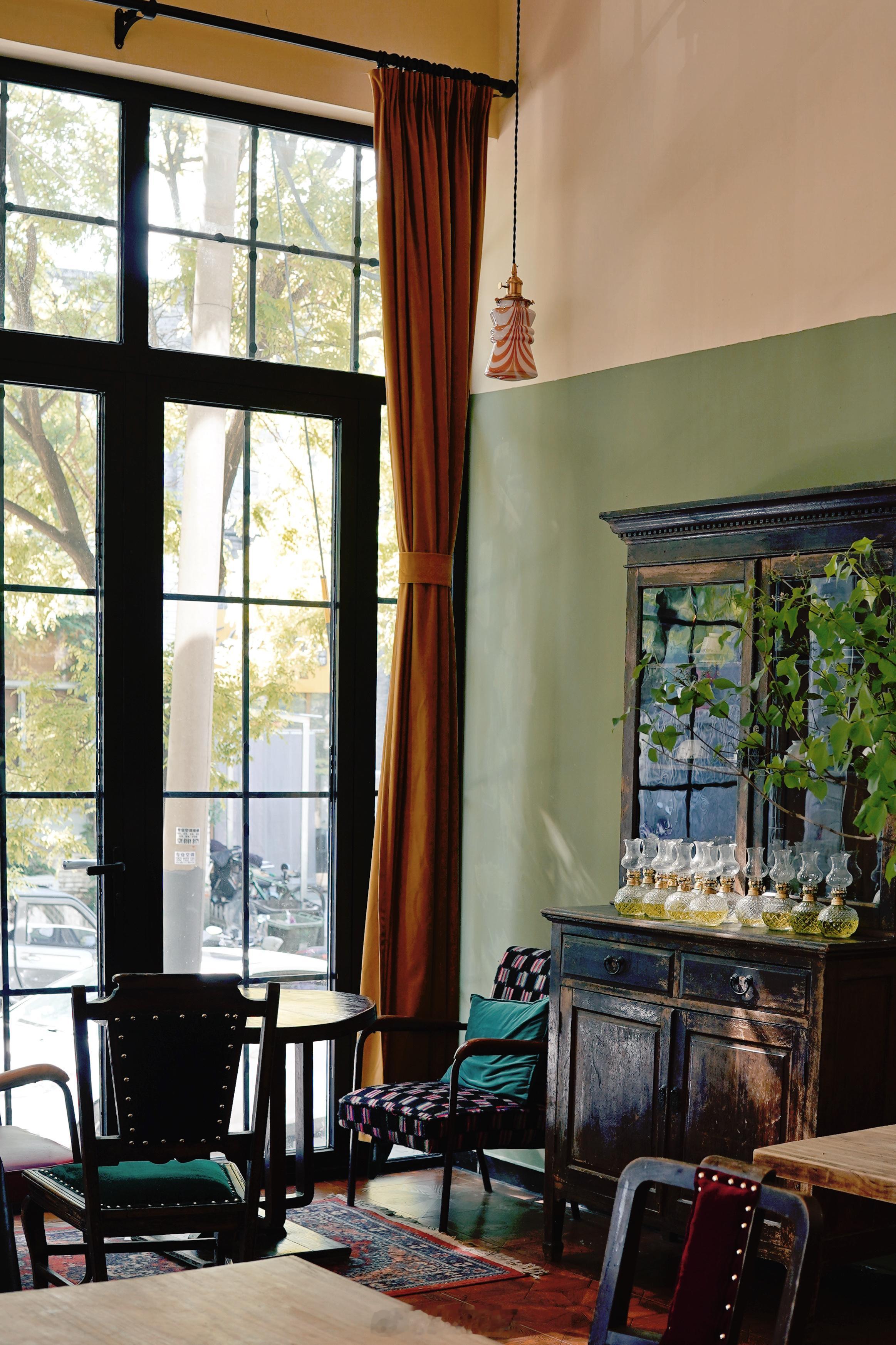 这家店的空间及奢侈,大片空地弥补了南锣小店的紧凑。感觉像旧日的舞厅,来点蓝调就可以随意跳舞。高挑的格子窗浓浓法式风格,旧家具带着一种时光妊娠岁月静好的底气,在北京绝难遇见如此松弛和漫不经心的法式复古风。