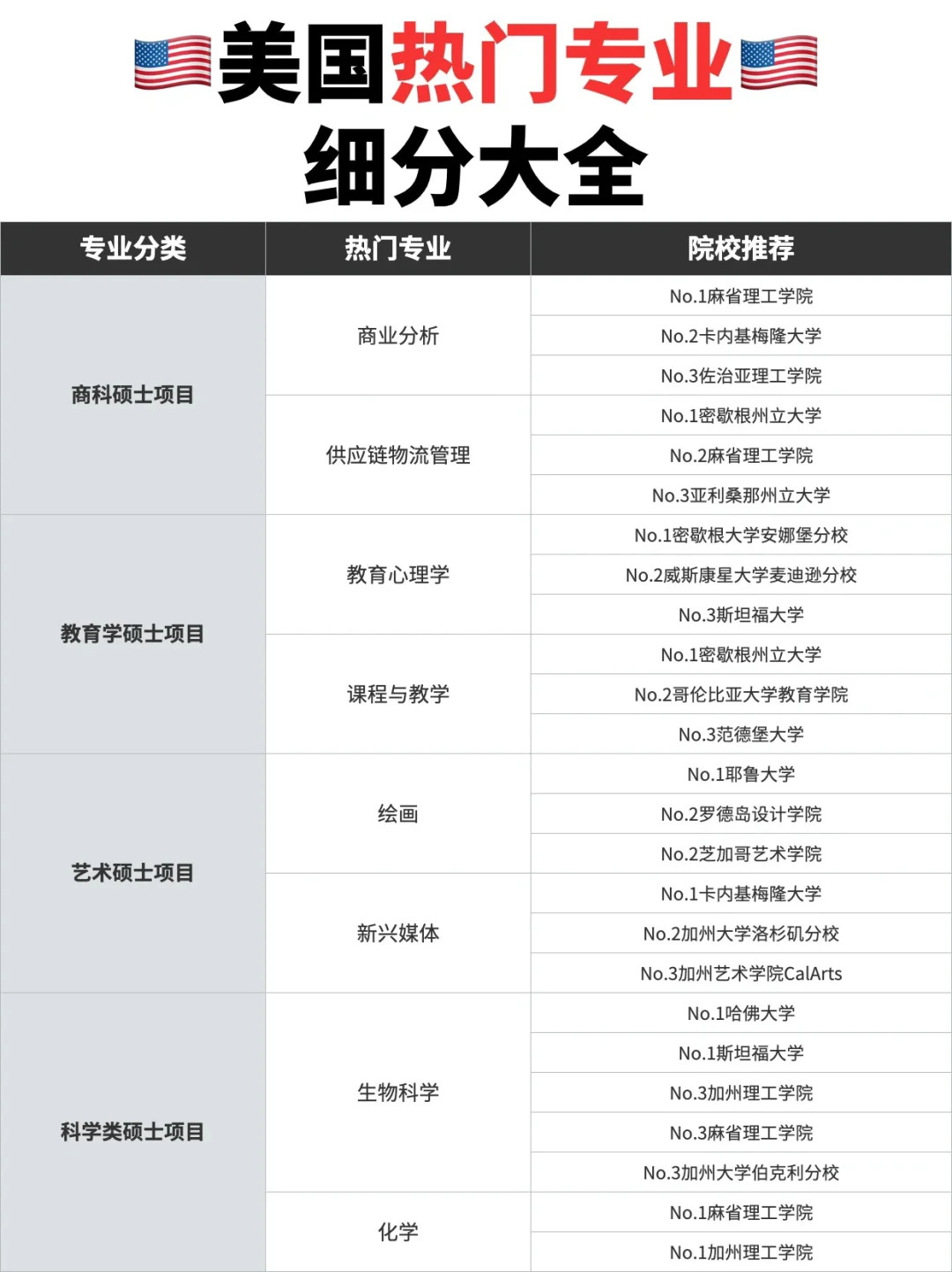 今天,就给大家介绍一些美国留学的热门细分专业,仅供参考哦~