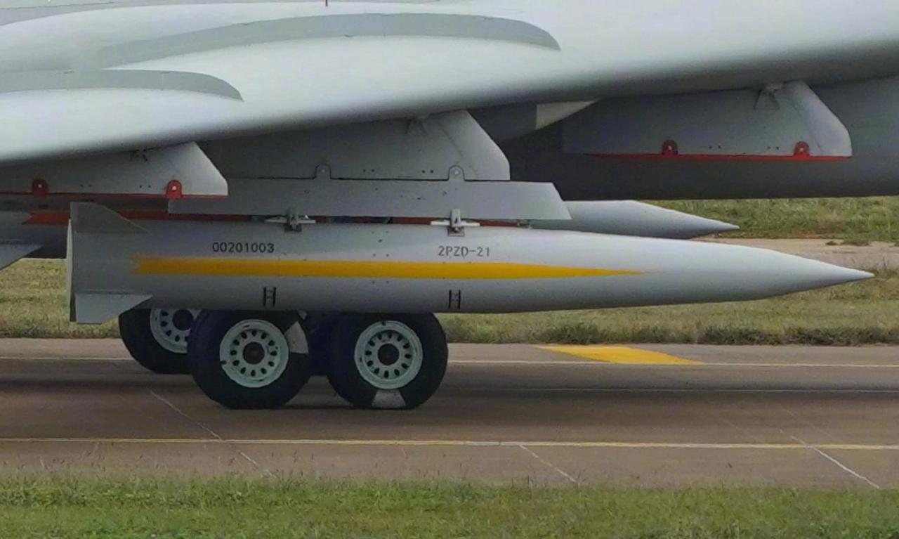 轰-6K发射的新高超音速导弹的一瞬间。 看上去似乎是M20,BP-12或AG-1000等弹道导弹的空射型号,这几种导弹主要性能相仿。也与俄罗斯“伊斯坎德尔”和“匕首”导弹的性能相仿。 还有个可能是,这种导弹也叫“鹰击-21”。因为鹰击-21是个筐,多种型号往里装,可能舰载的和空射的都叫鹰击-21,弹体直径850毫米以下的一种系列导弹,安装不同的高超战斗部,配备给不同的发射平台。 轰-6K挂载的导弹弹体上的2PZD-21,意思可能是2配重弹-21,另一侧机翼下挂的那枚导弹可能是1PZD-21。 不过最可能的解释是,2PZD-21,2是两倍的意思,PZD是“普世-真理-导弹”的意思,21是指21世纪。 21世纪的双倍普世真理弹。 #福建舰海试 网友CG动画变成现实#