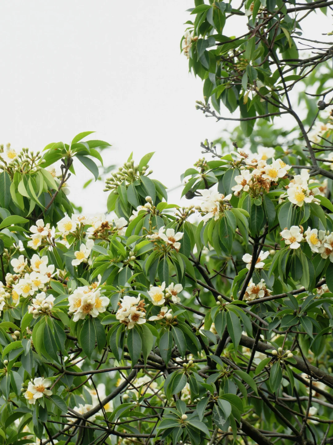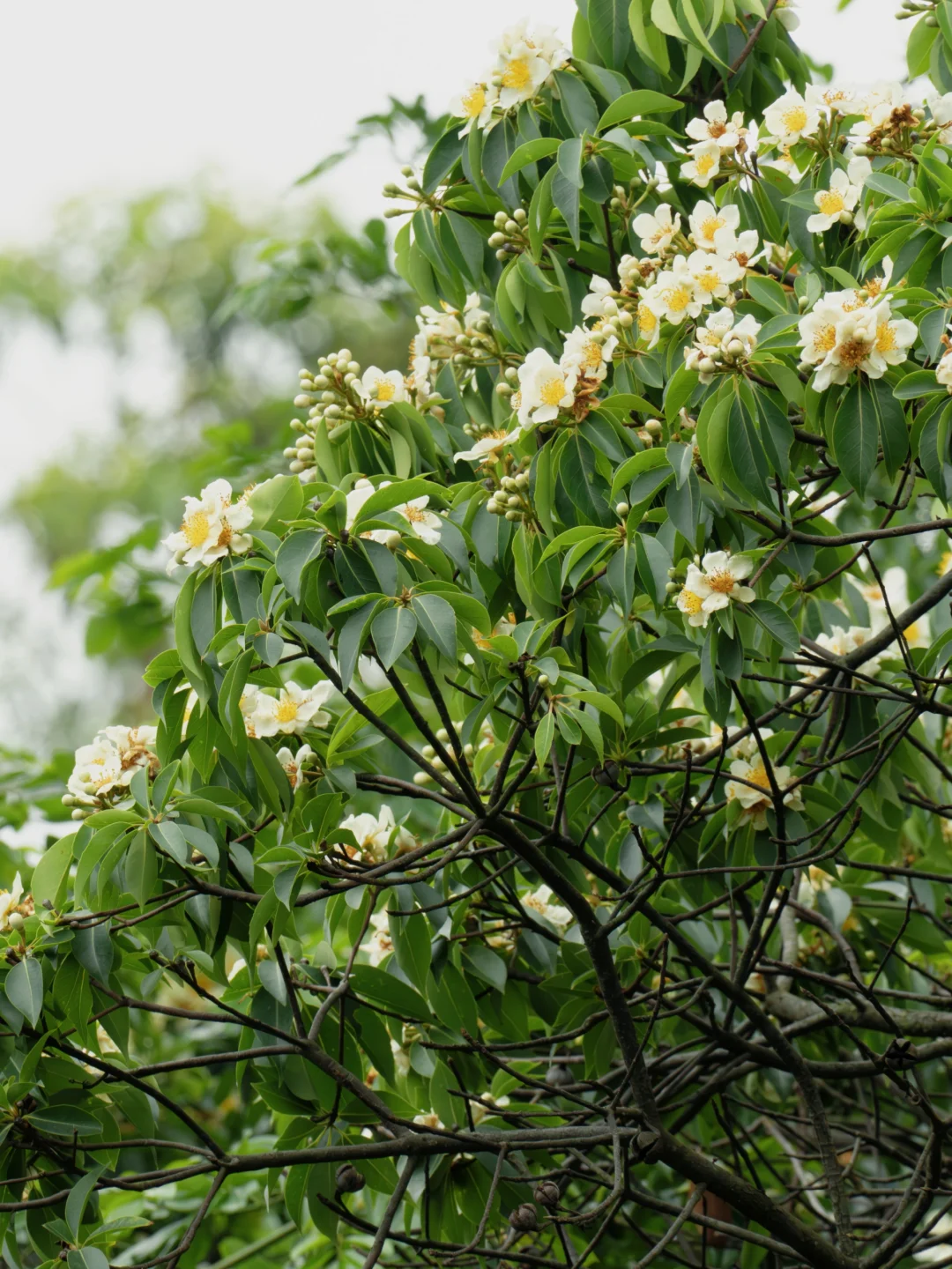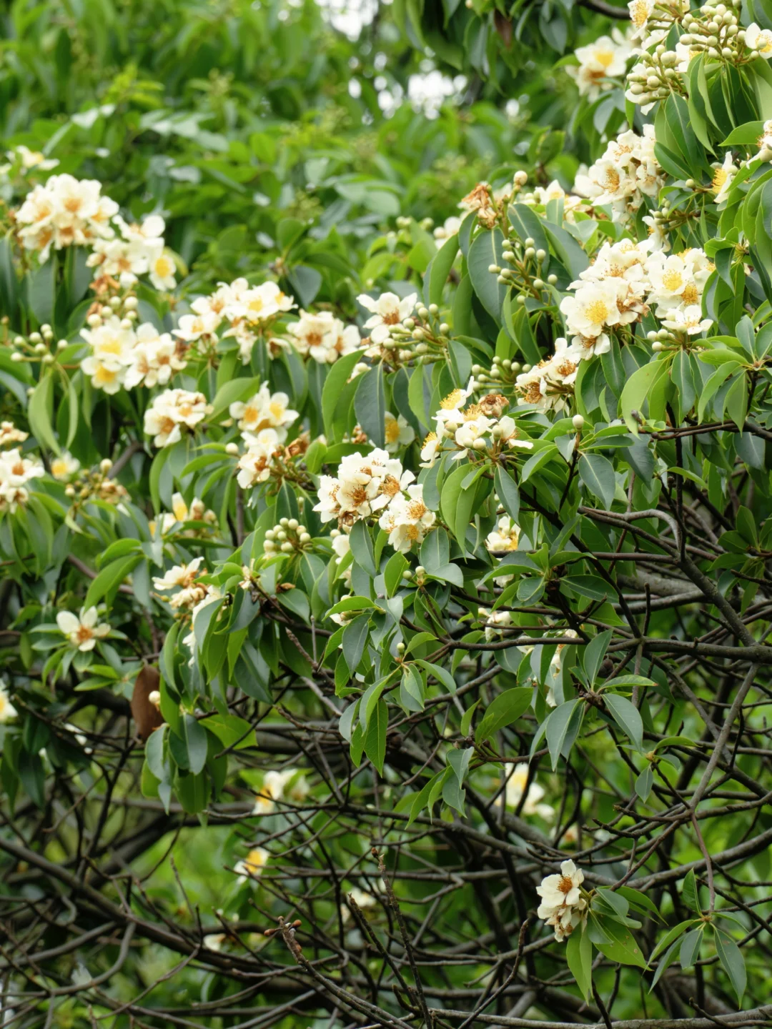 当你抬头时,一棵正在盛花期的木荷便如同多日阴雨后的太阳,一下子点亮了整个森林。一朵朵的小白花宛若荷花般白色纯洁立在枝头。这个五月多去森林里徒步,静默地行走,与自我对话,与自然对话,远离嘈杂人群,去偶遇一棵开花的木荷吧。