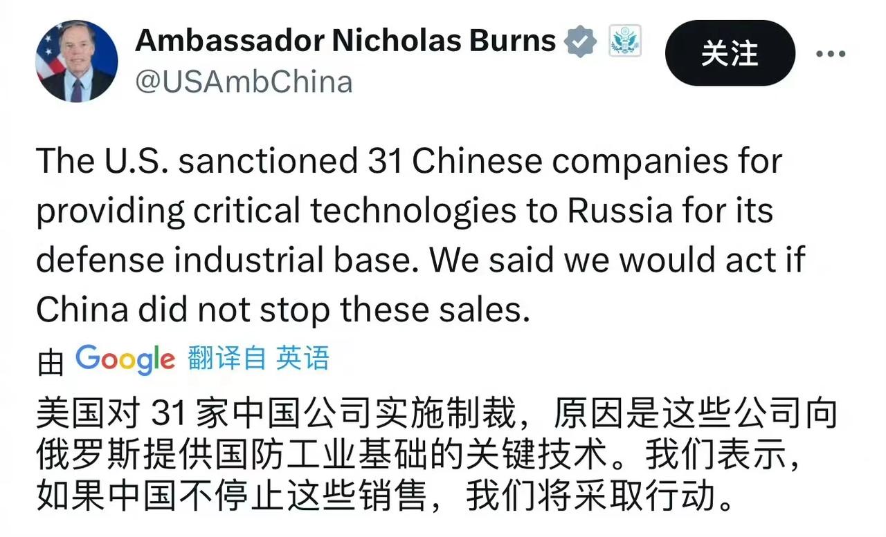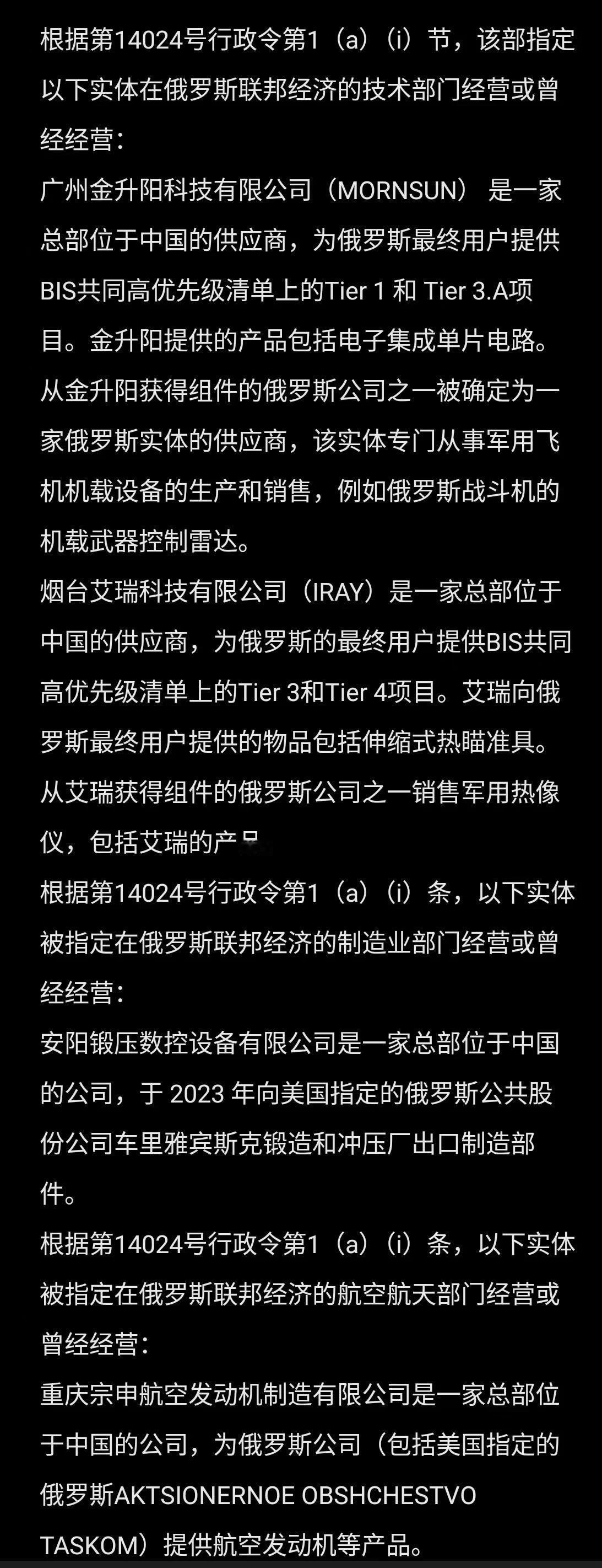 既然卖民用设备都会被制裁,不如索性公开卖吧。 这事充分说明,布林肯到中国,碰上了“钢铁公司”,任何好处都没讨到就灰溜溜回去了。因此美国马上就宣布制裁多家中企。 美国此次制裁的中企,涉及到光电、航运相关领域的实体公司,多数是与俄罗斯有军民两用技术贸易的中企。 【事涉20家中企,美再对华下黑手!】据路透社最新消息,美国再次针对俄罗斯实施新的制裁措施,涉及近300家公司和个人,包括20家以中国内地及香港作为基地的公司。这是美国在所有对俄制裁措施中,迄今为止针对中国企业进行最广泛的制裁行动之一。中方坚决反对美国实施非法的单方面制裁。 此外,美国拟永久禁止华为、中兴通讯、海能达、海康威视、大华股份等“受管制清单”企业参与无线设备认证项目。 #美新一轮涉俄制裁含十余个中国实体#