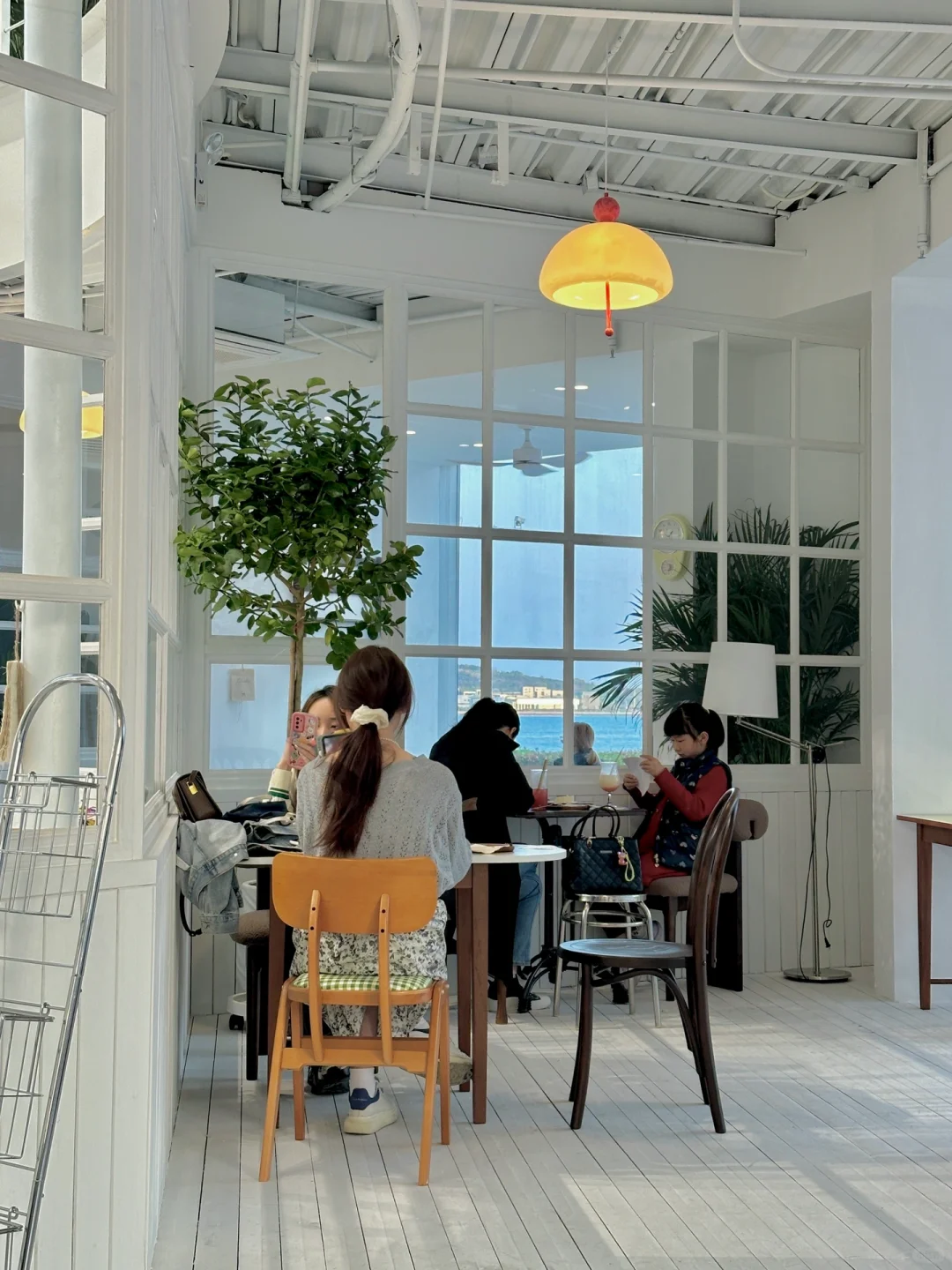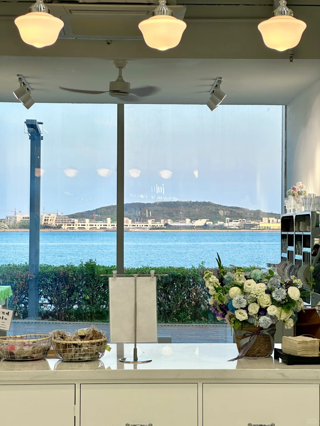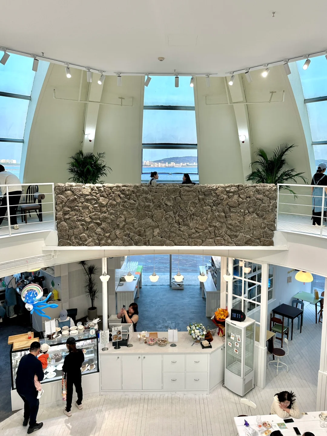 上下两层的海景咖啡厅 每一张都是人生照片的程度… 开心果拿破仑好好吃啊!!