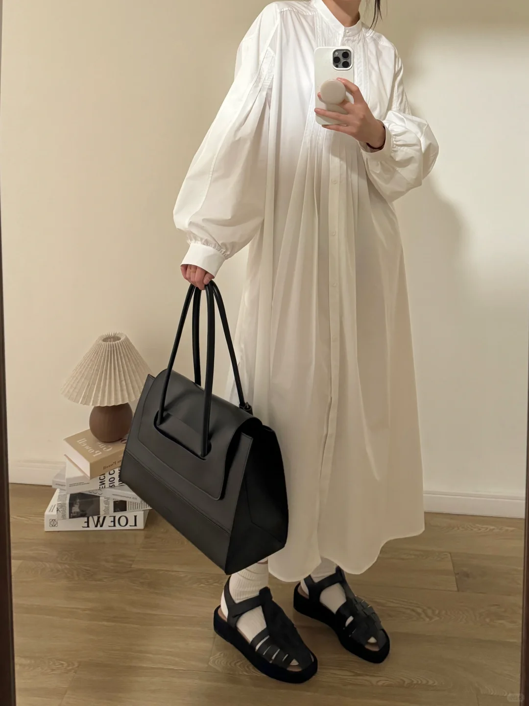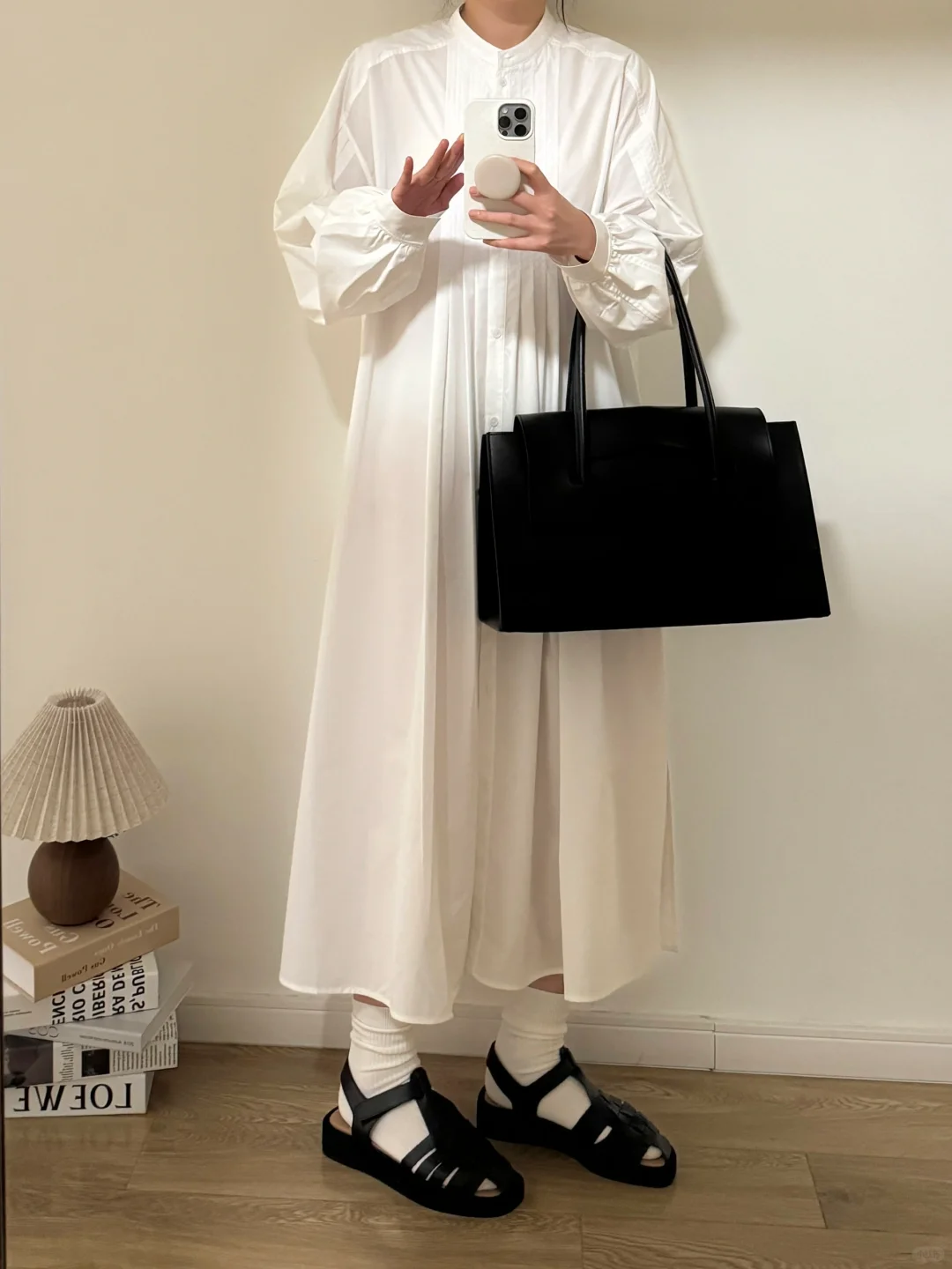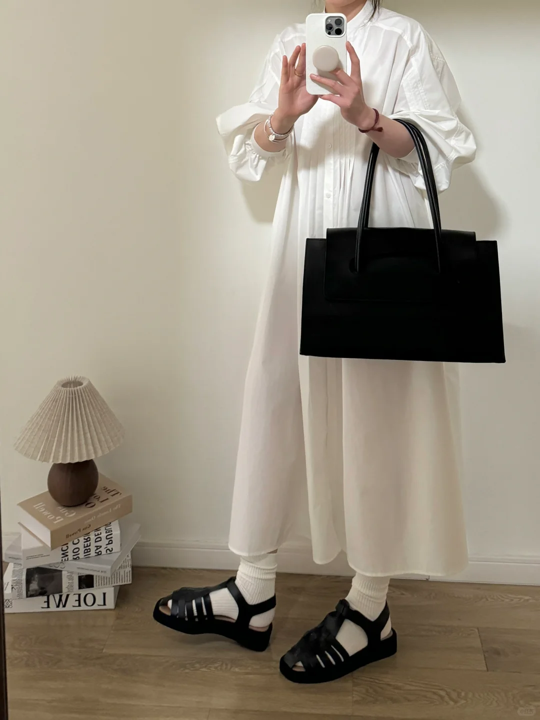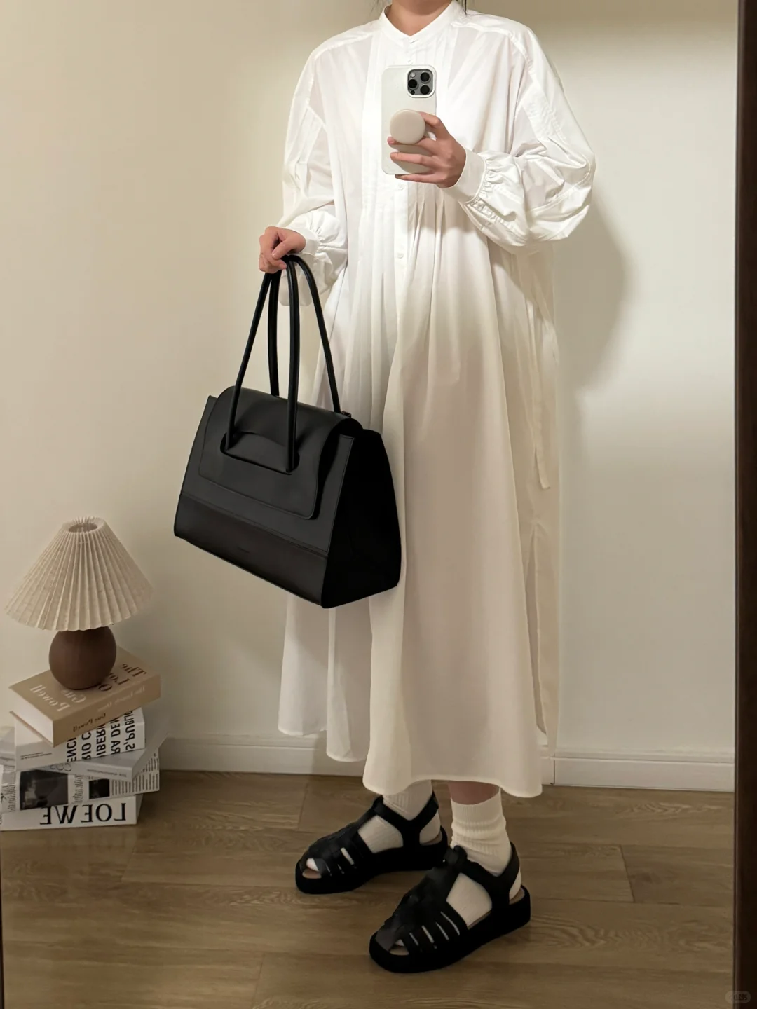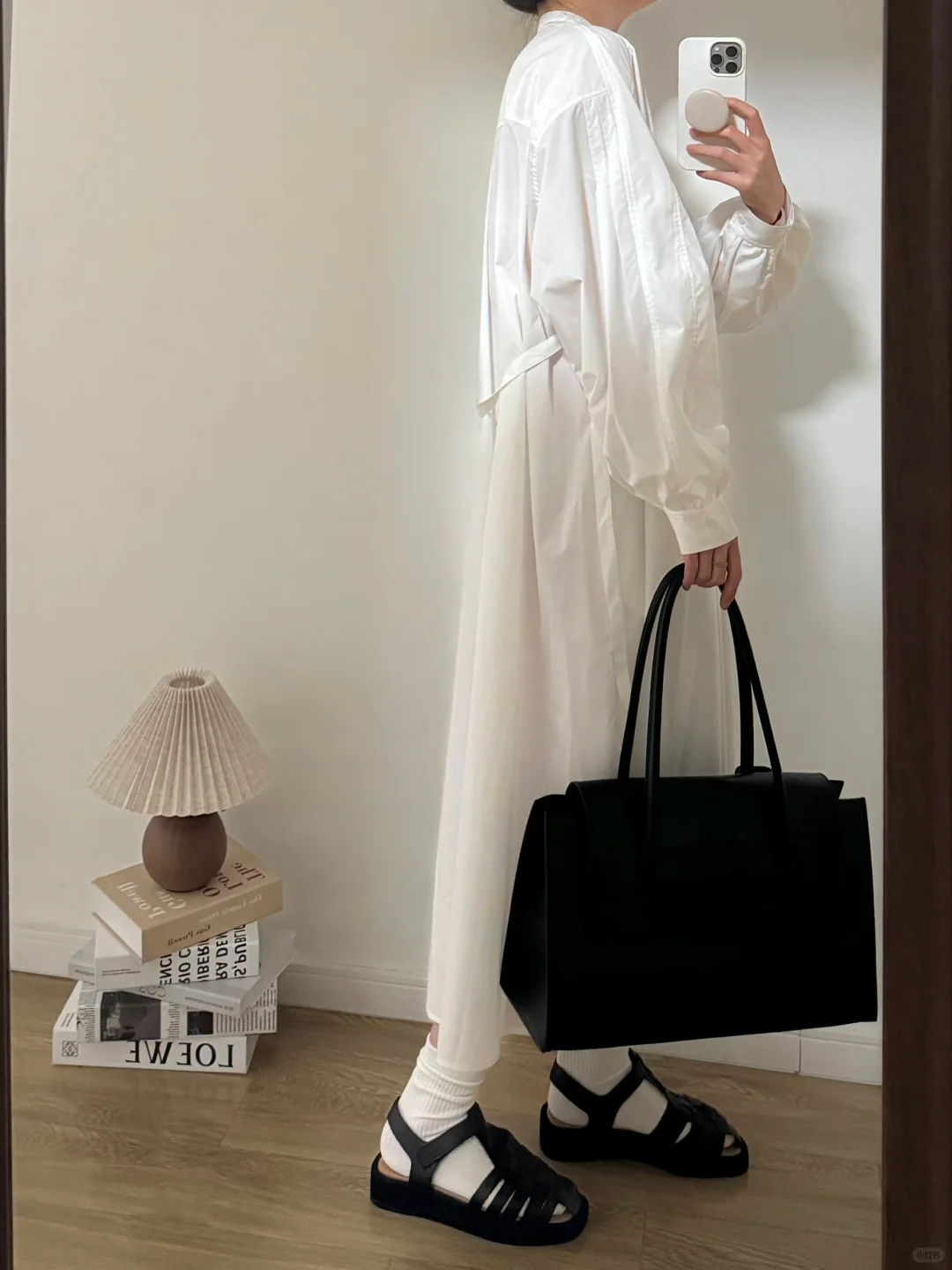 干干净净的白色衬衫裙+黑色罗马凉鞋 夏日清爽又很随性!