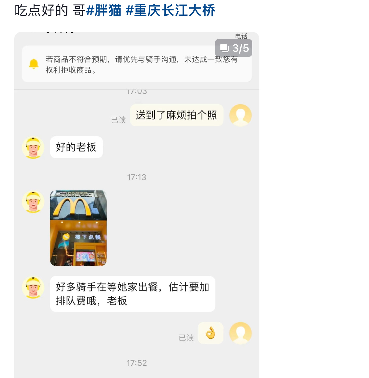 投稿,“一时间不知道是送外卖的幽默,还是拾外卖去卖的幽默,还是去打卡自拍的幽默”