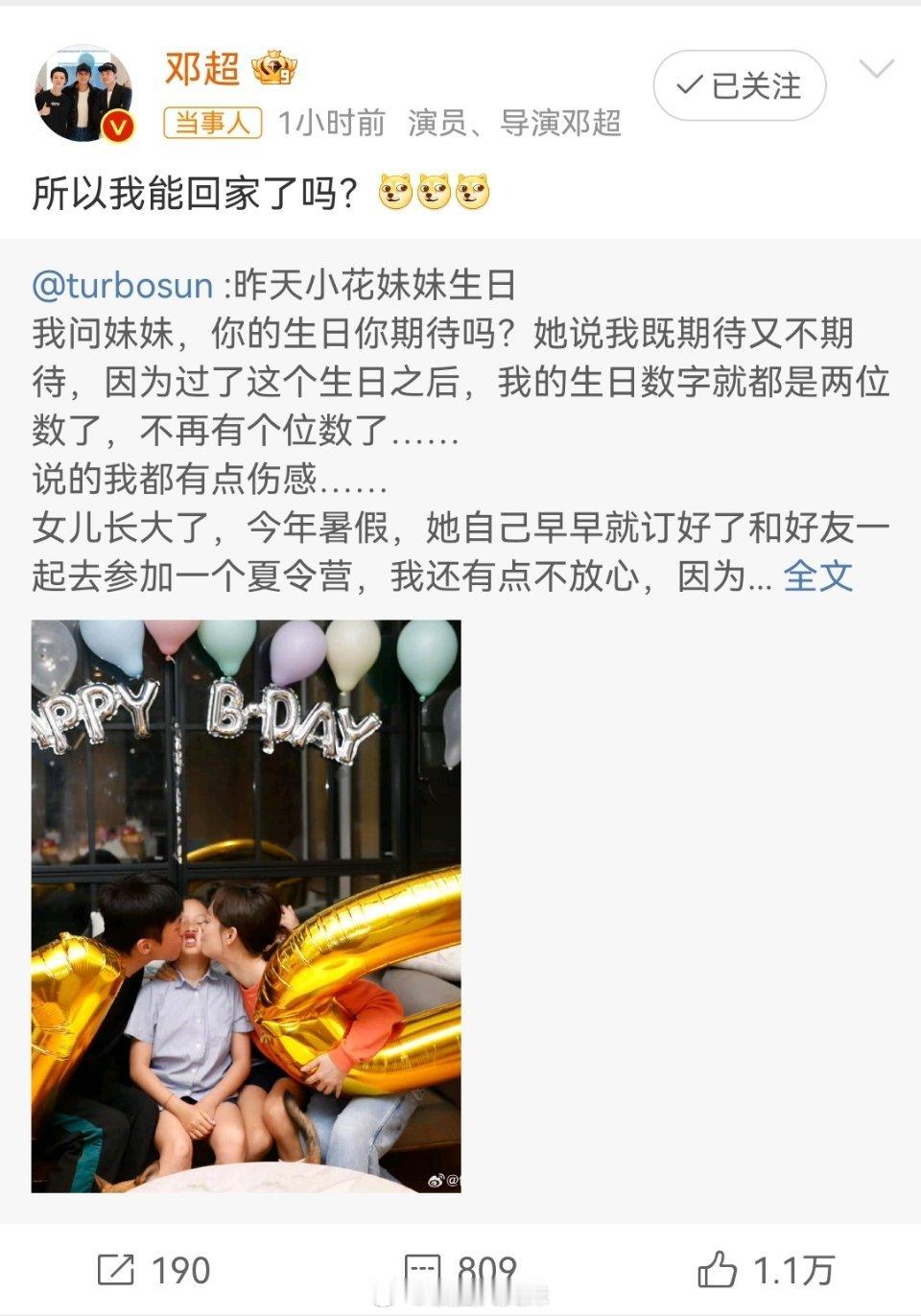 哈哈哈哈哈哈都在给小花过生日了,超哥还在问自己能不能回家[允悲][允悲]小花妹妹生日快乐,要美美的长大,别跟你爸爸一样这么搞笑[允悲]