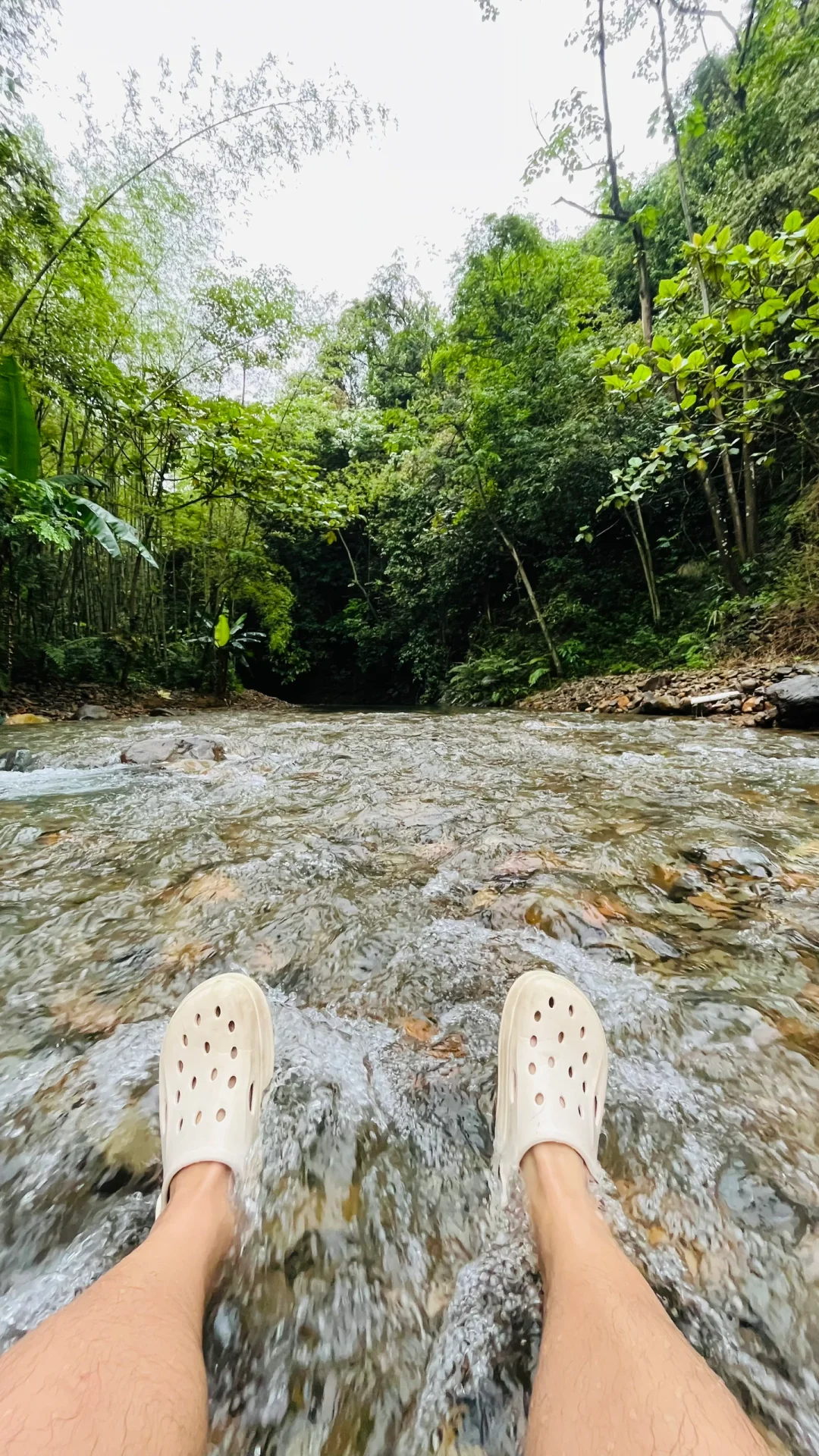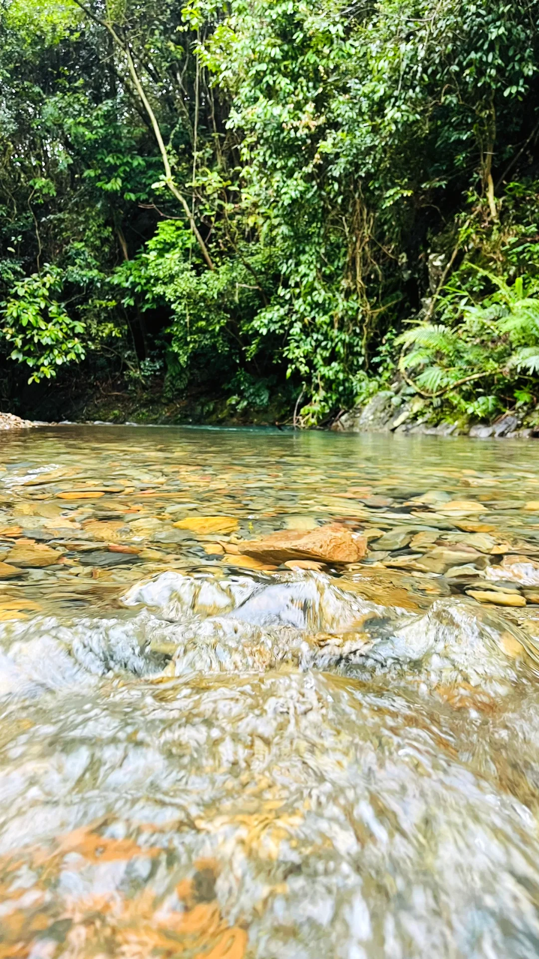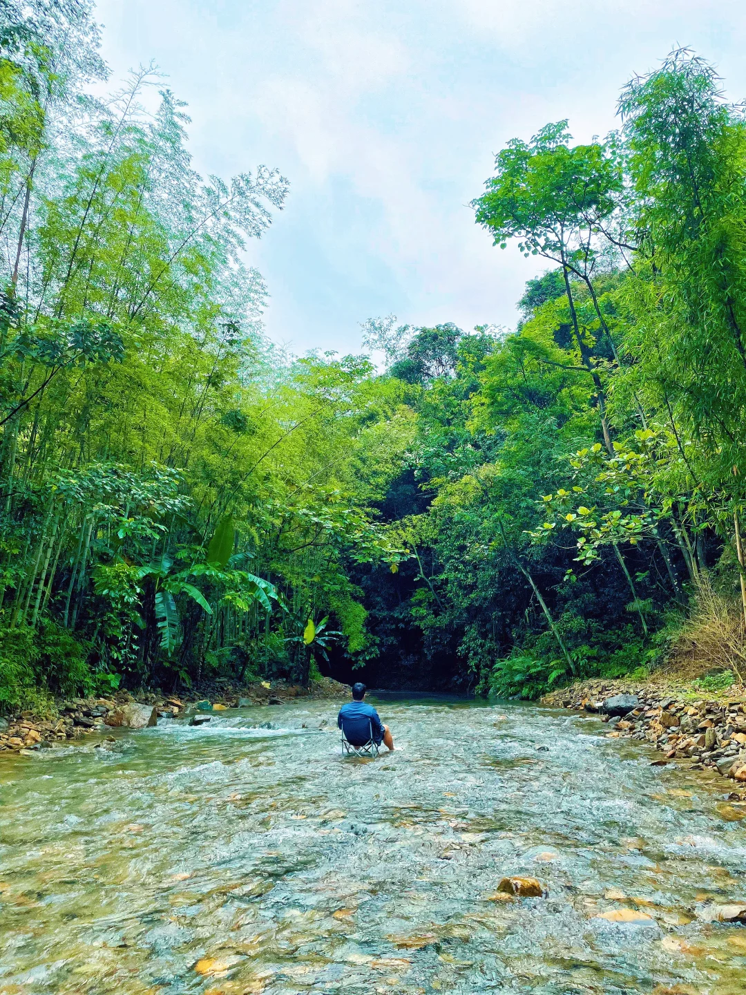 🏕️从广州出发只需90分钟就能到达,位置在清远笔架山附近,距离清远市中心也是非常近的,这里的水清澈见底,你可以选择坐在小溪中间发呆,泡在水中能感受天然的穴位按摩,河道中有很多浅滩位置,非常适合小朋友玩水,家长可以在岸边喝茶聊天。 🚗山上基本都是水泥路,轿车也能通行。