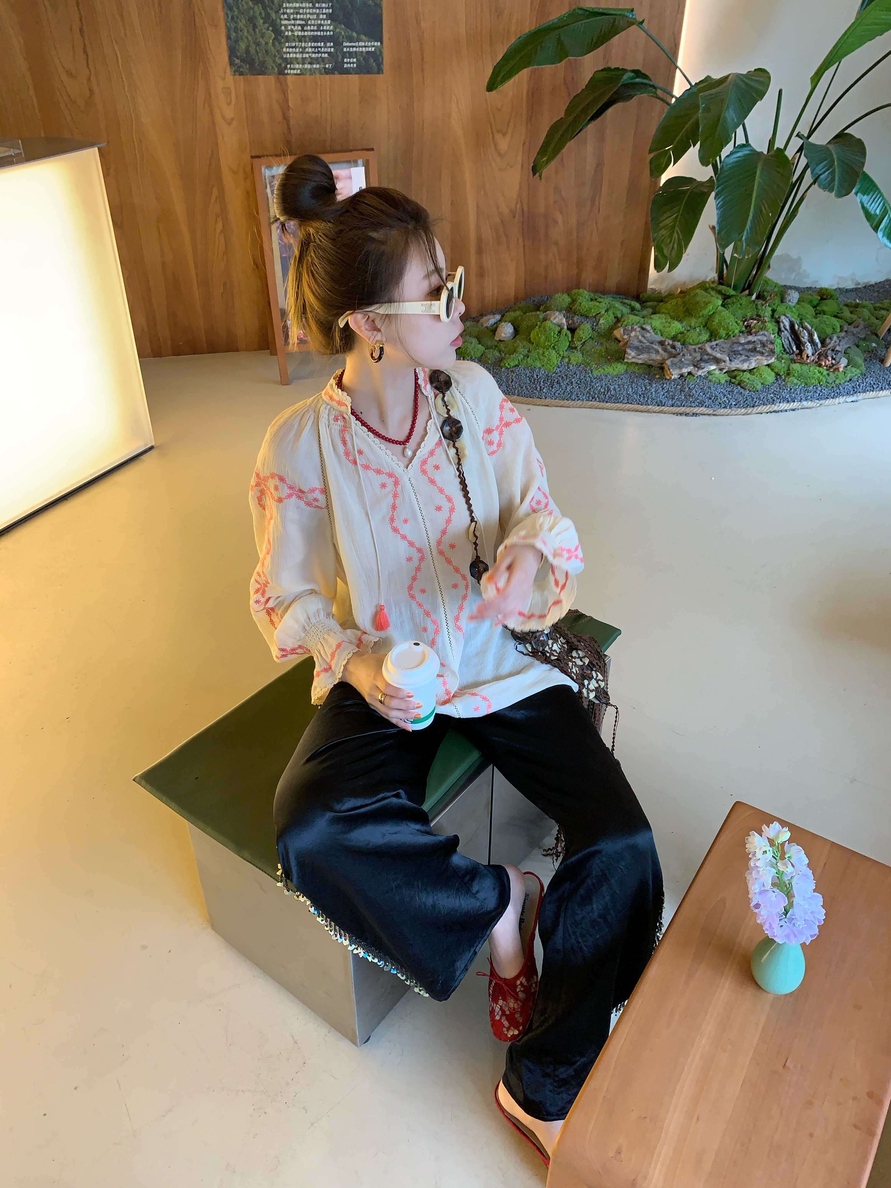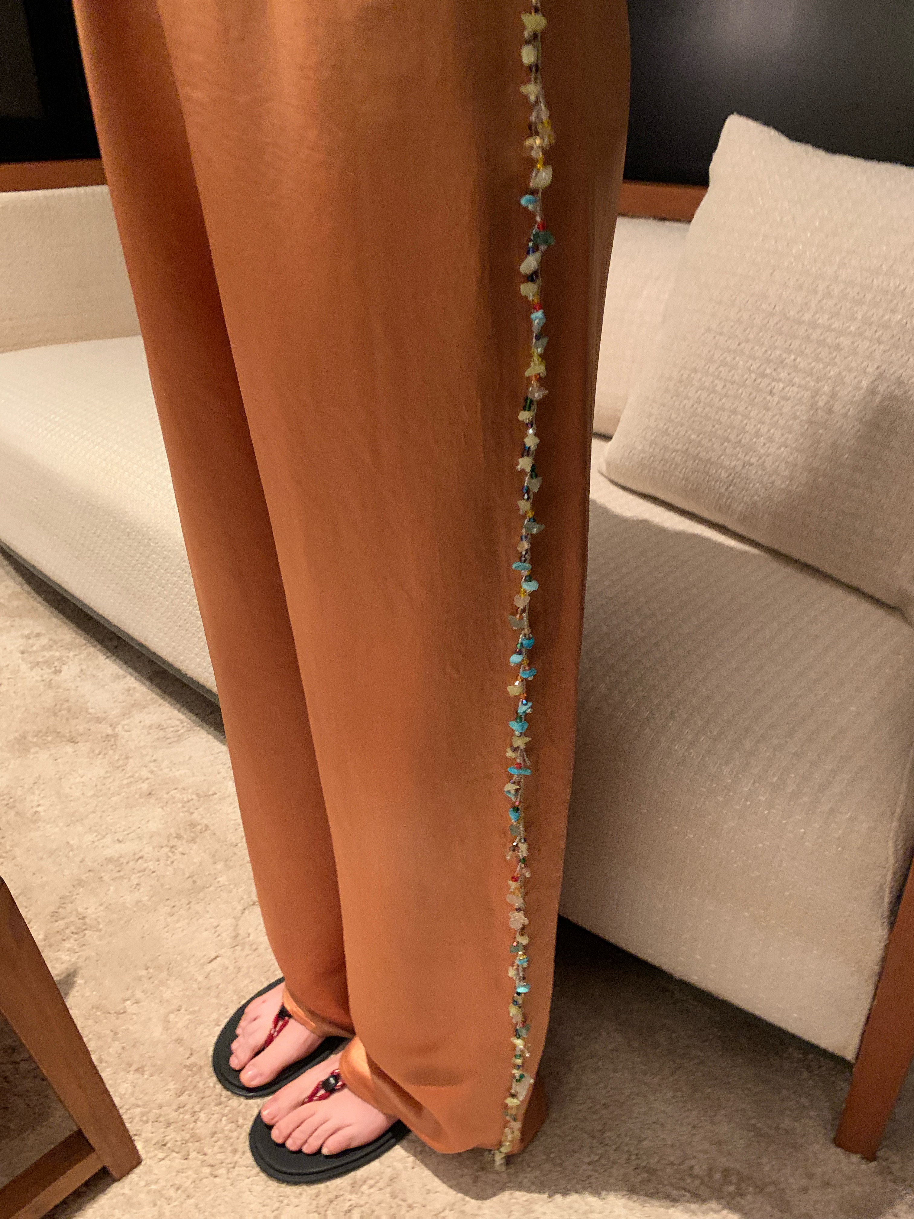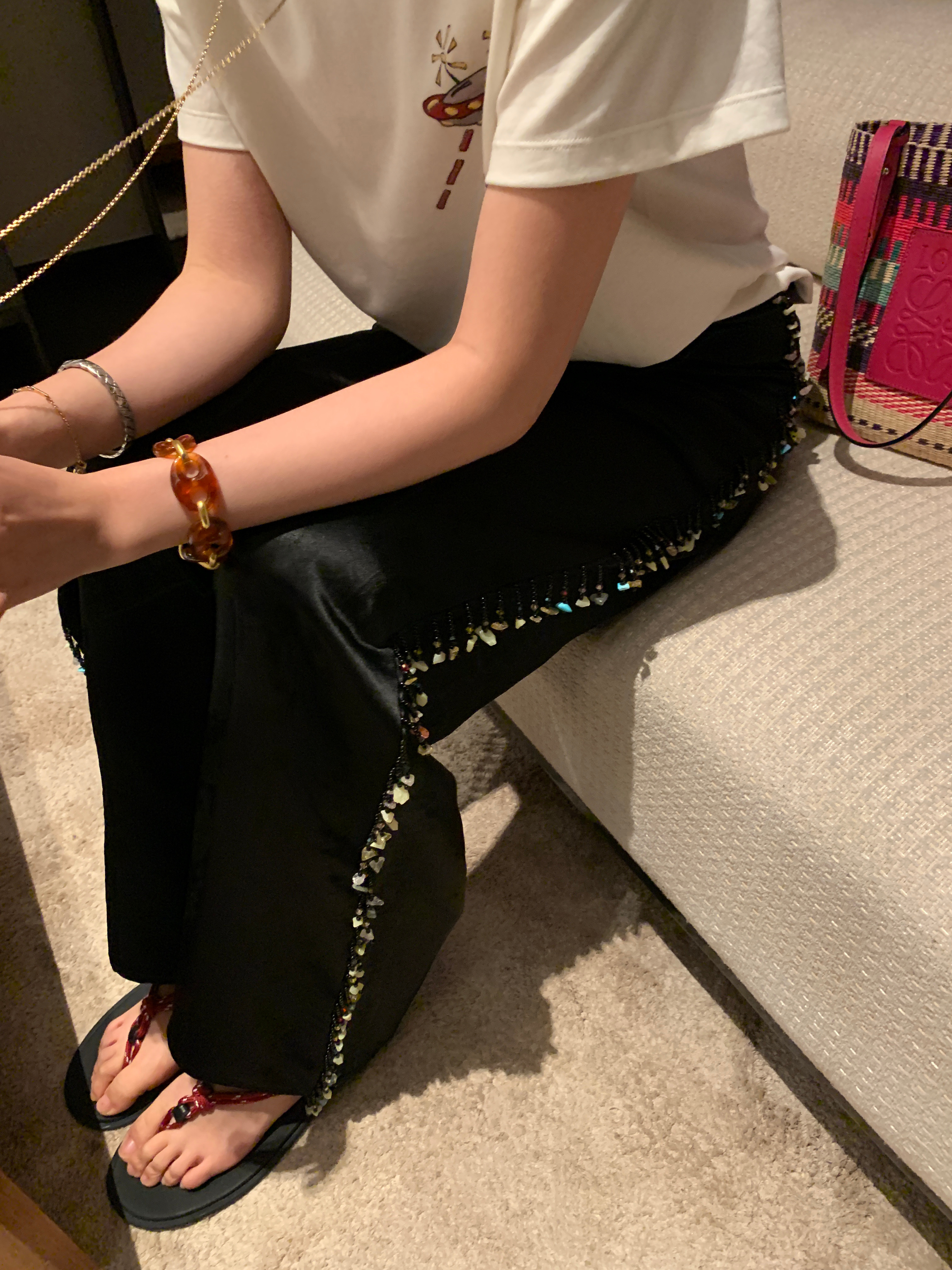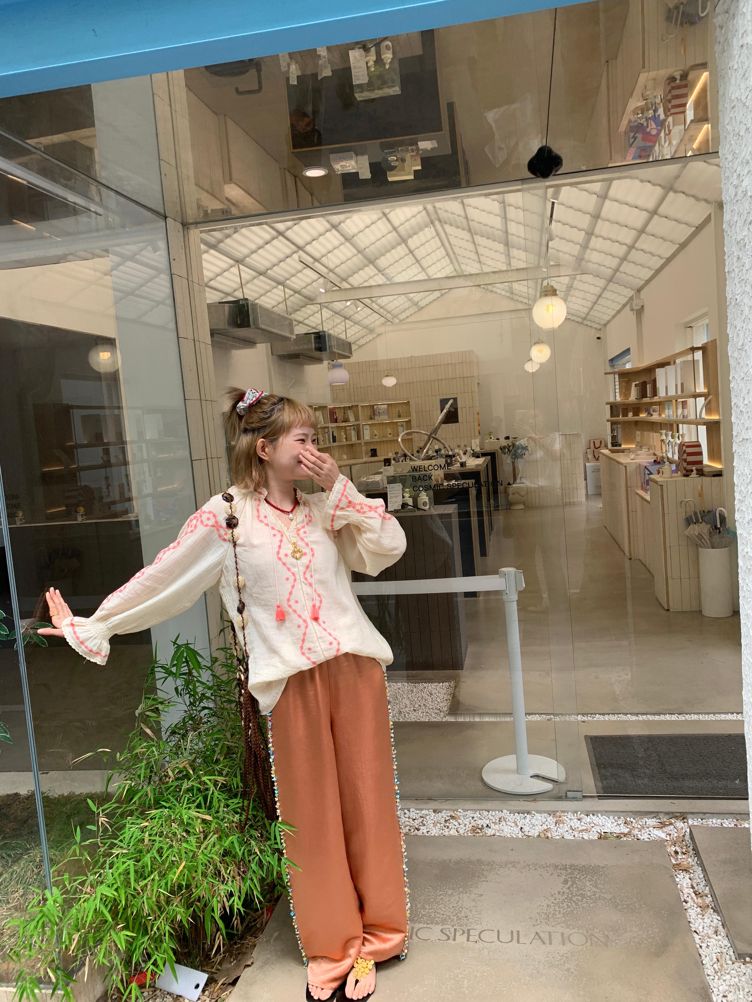 早呀 彩石流苏好有夏天的味道🪸醋酸滑滑裤好舒服好有质感 藕粉色很特别 市面上都