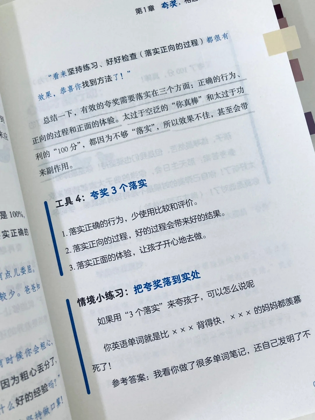 🔹夸奖——有效的夸奖要落实在三个方面:正确的行为、正向的过程和正面的体验