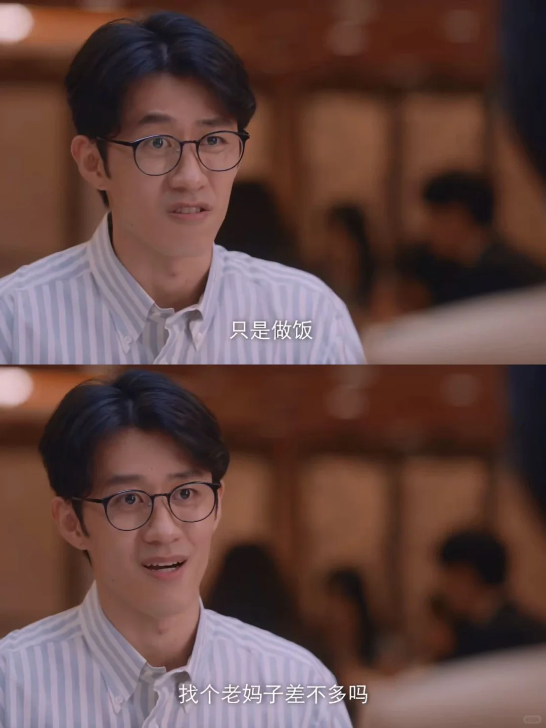 奇葩相亲男问阿英喜欢干点什么,阿英说喜欢做饭。他说:“只是做饭,那不是找个老妈子差不多吗。” 这也太不尊重人了,就因为阿英喜欢做饭,相亲男还幻想上了,喜欢做饭又不是专门做给你吃。