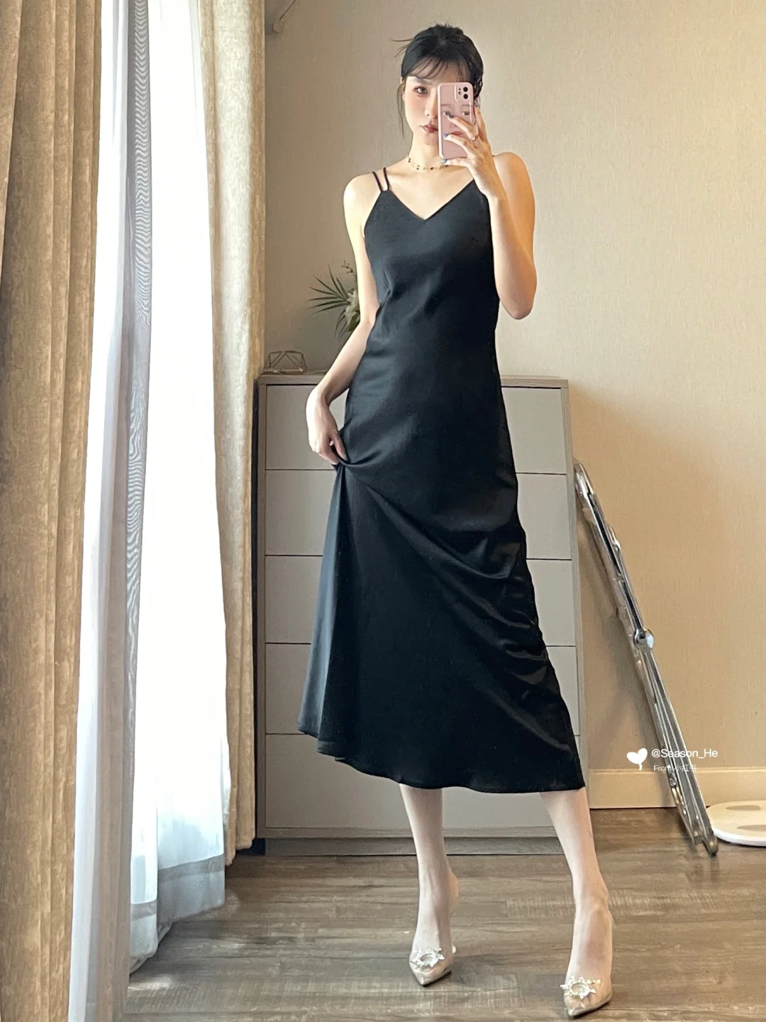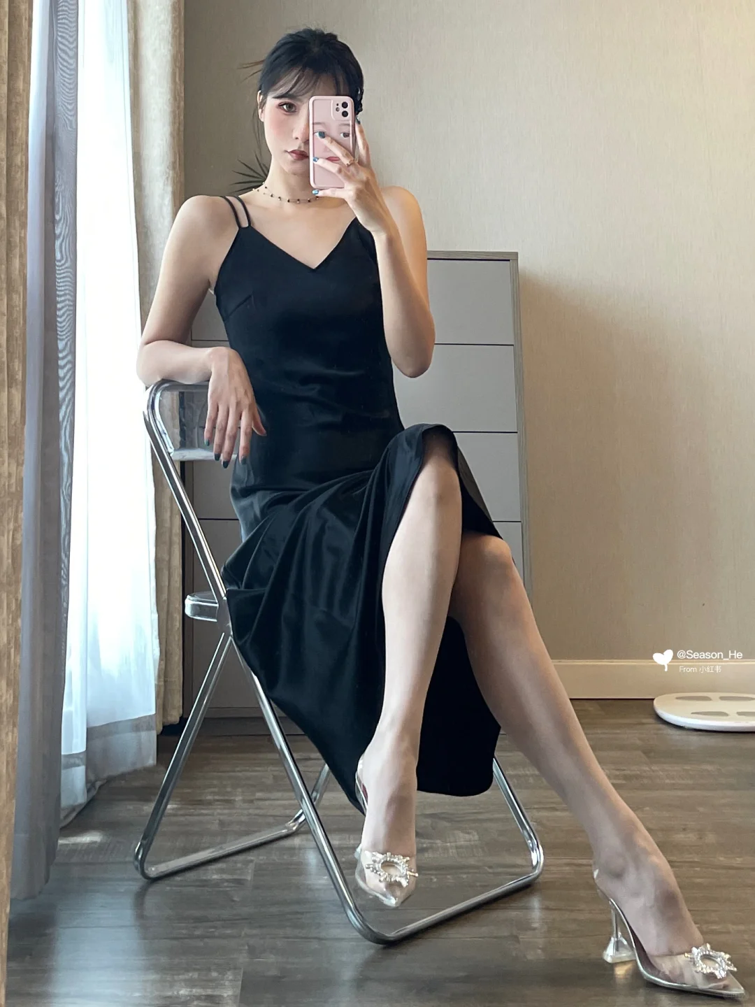 大数据请把我推给喜欢吊带裙的姐妹 黑色长款配水晶高跟鞋整个气质拿捏[害羞R]