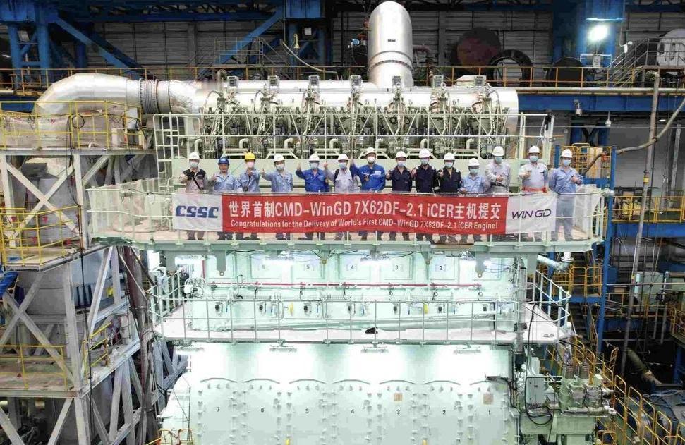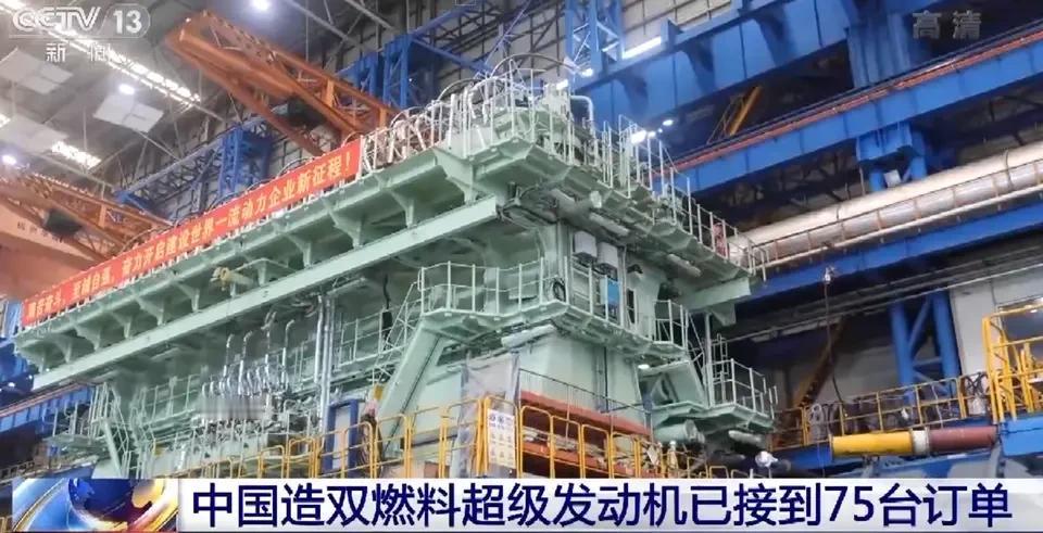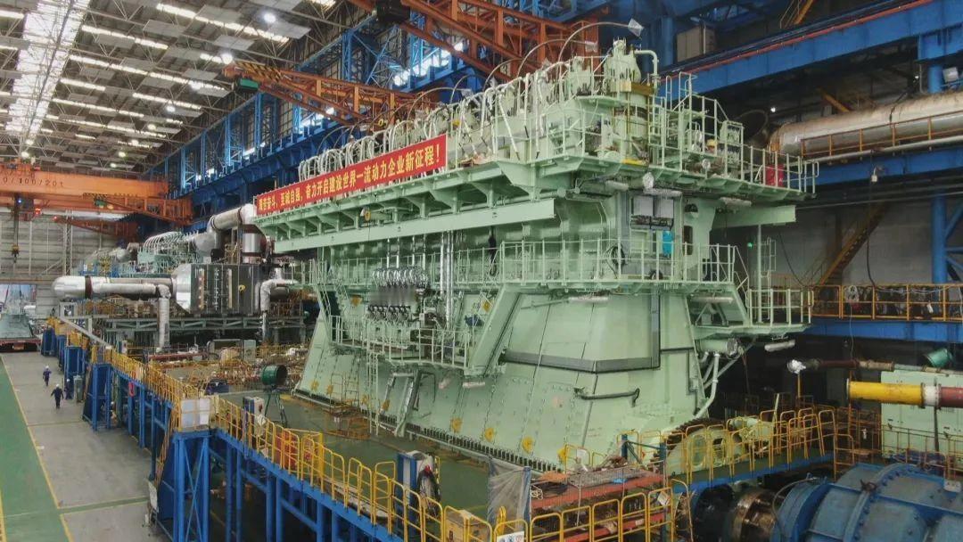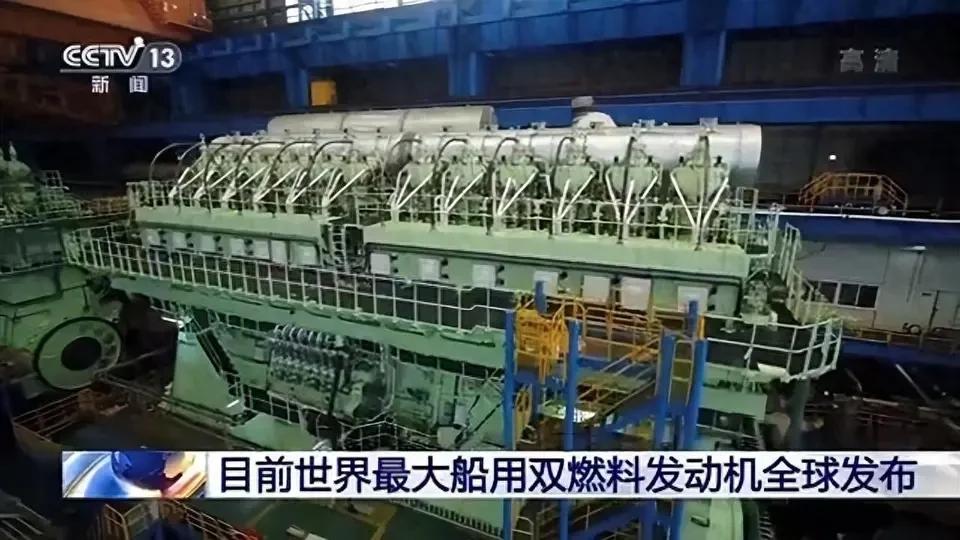 韩国建造的所有LNG液化天然气船,主机都是从中国进口的。 韩国目前所承接的全部LNG船订单的主机,均从中国进口,这款中国船舶集团旗下的CPGC-WinGD 12X92DF船用发动机,是全球最大缸径双燃料船用发动机,集超大功率、智能控制、绿色环保于一体。采用12缸,缸径920毫米,重达2140吨,输出功率达63840kW,约8.6万马力,长度为22.7米,高度超过5层楼。 这款船用发动机每台定价高达2850万美元,是我国少有的高端出口发动机。 目前中国船用低速柴油机的全球市场份额为40%,双燃料低速柴油机的全球市场份额达到70%。到2023年,中国大型双燃料低速柴油机的全球市场份额是百分之百。