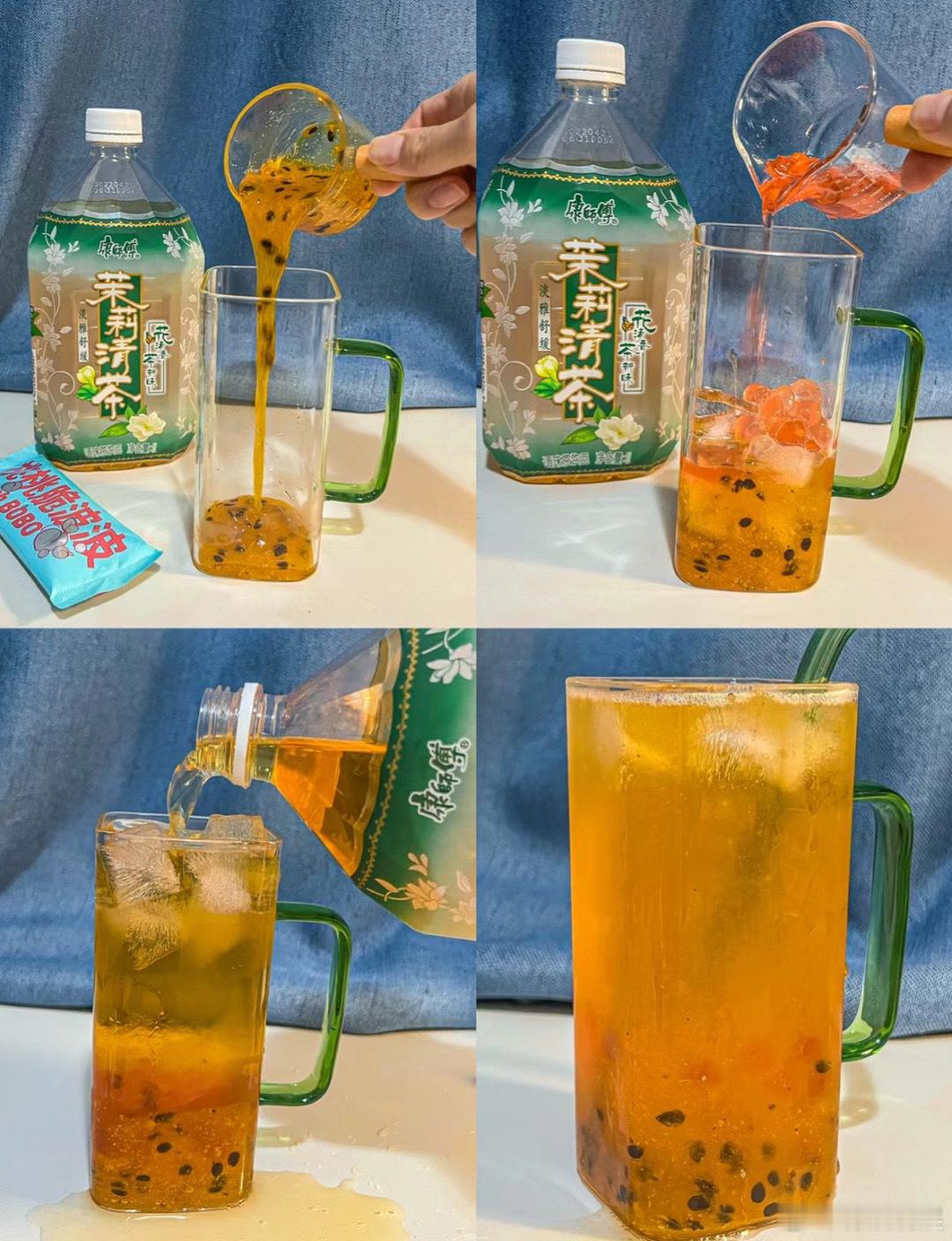 #夏天第一杯双响炮#🍹 炎炎夏日,一杯自制的百香果双响炮,百香果 +茉莉清茶 +脆波波十冰块使劲摇匀,酸酸甜甜!还带着茶的清香,酸甜交织,清凉解暑。加入冰块,再点缀以薄荷叶,每一口都是夏日的清凉记忆!!