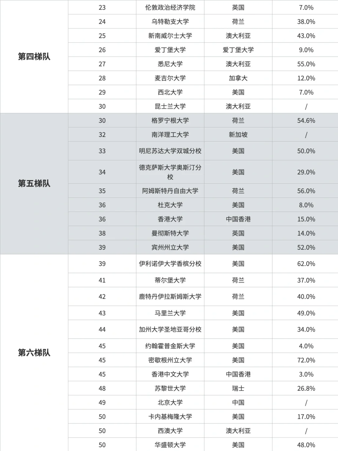 💥在 top50 的院校中,美国有 24 所,英国和荷兰各 6 所,澳大利亚 5 所,想去国外留学的可以重点考虑这些国家哦
