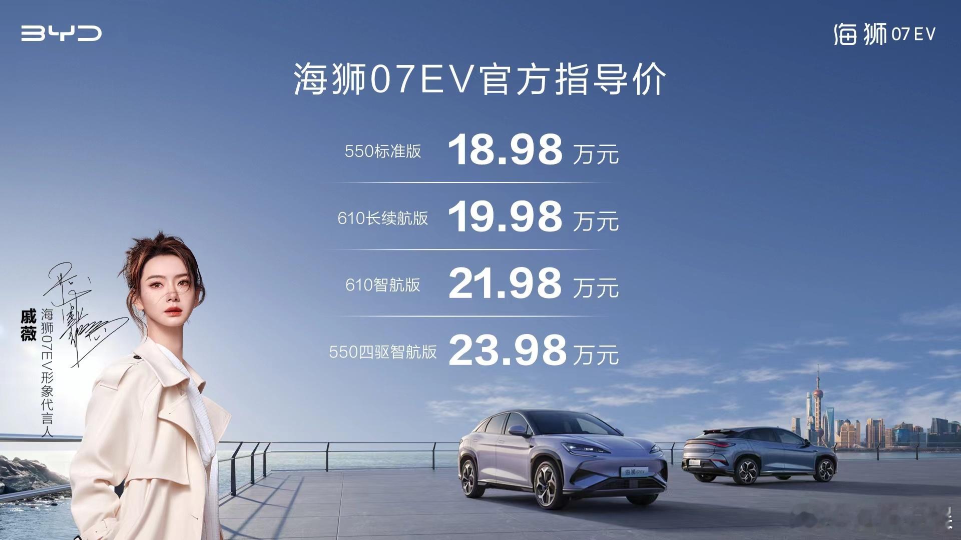 海狮07EV 以其创新设计和卓越性能,开启绿色出行新篇章。🔋 续航领先同级,让您的每一次出行都安心无忧。官方指导价格💰:18.98万元-23.98万元.