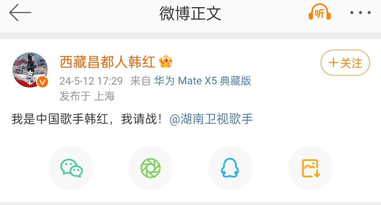 #韩红网速好快#韩红实名请战,我了个豆!
