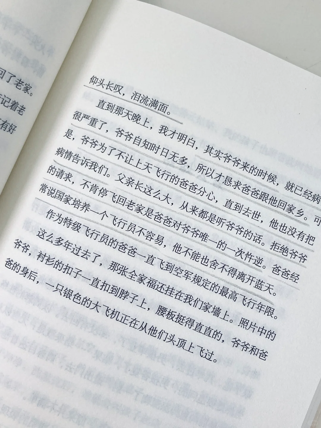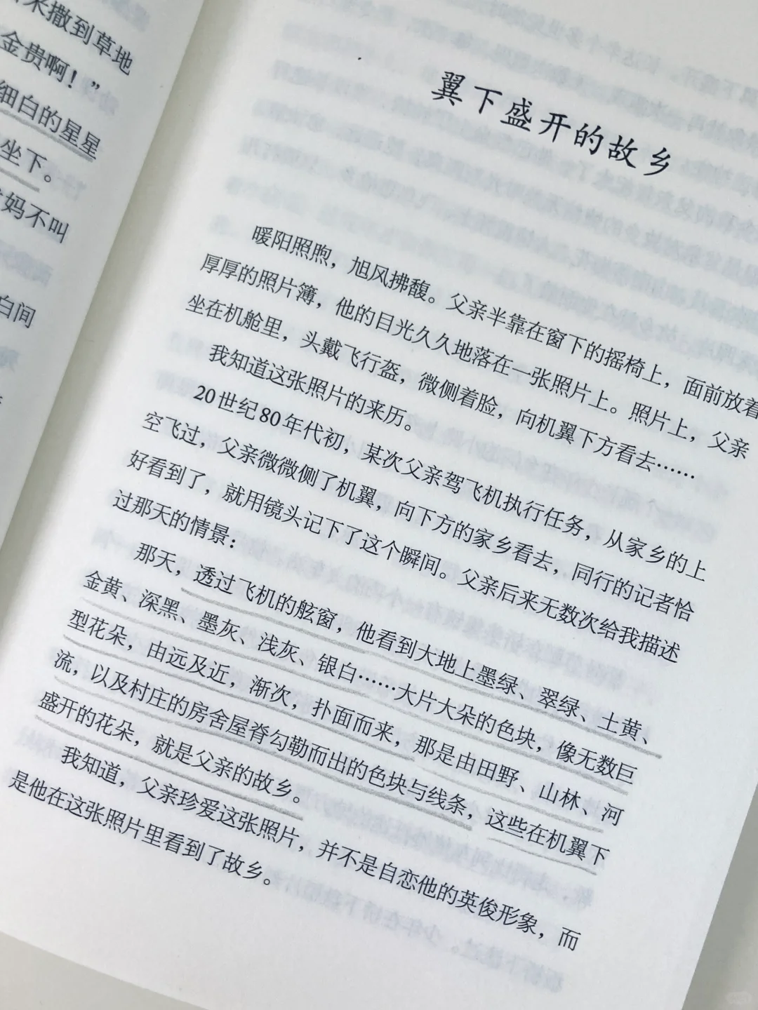 🟡其中《翼下盛开的故乡》写出父亲对飞行的热爱和对故乡的眷恋,他对爷爷曾说的那句“我不光是你的儿子,我还是国家的人”,读来让人动容。