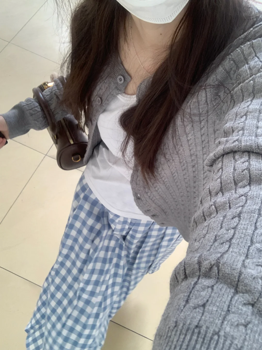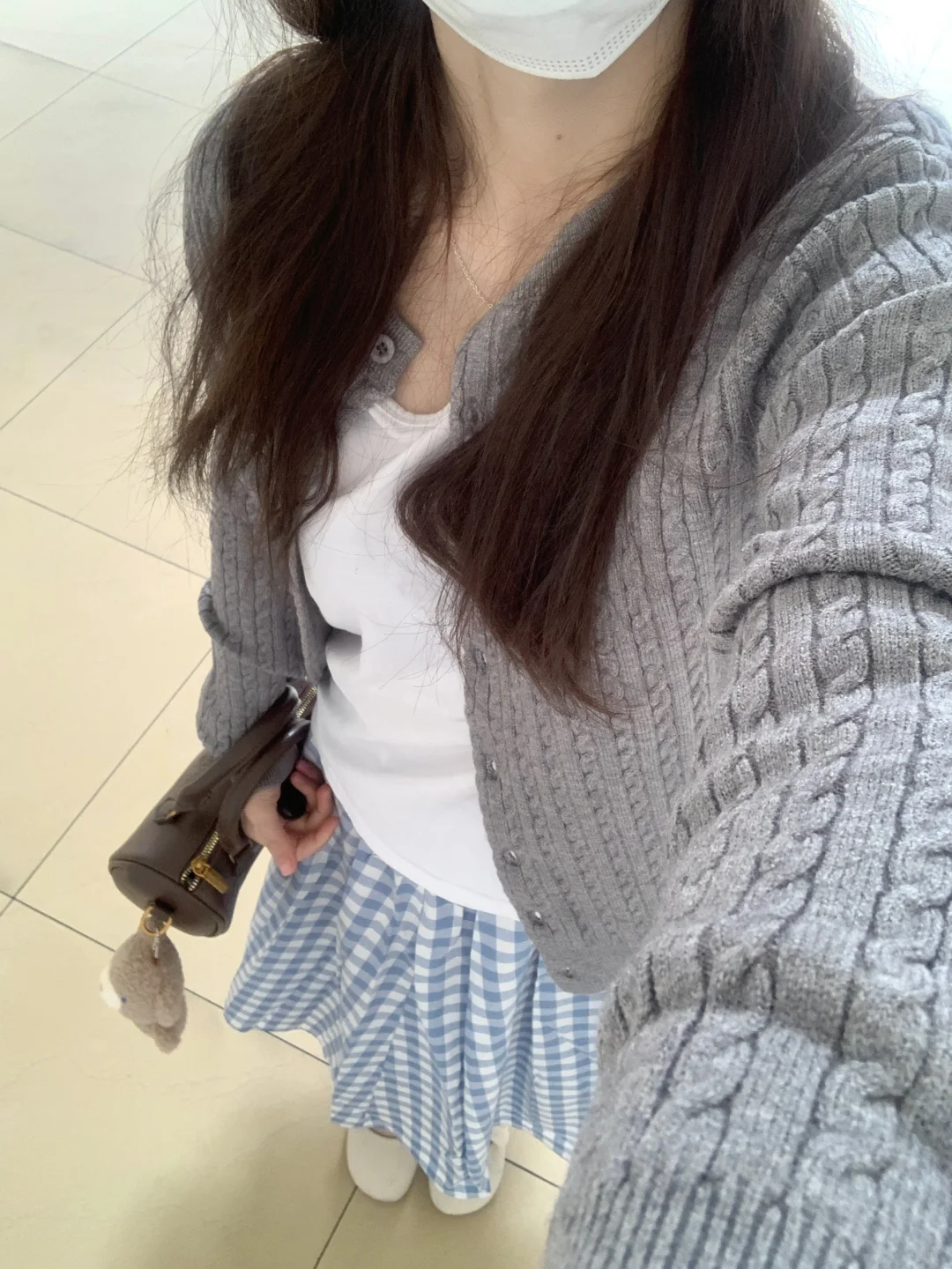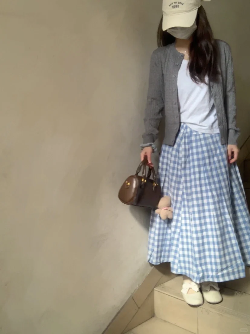 搭配蓝色格子裙好春天的感觉呀!很温柔