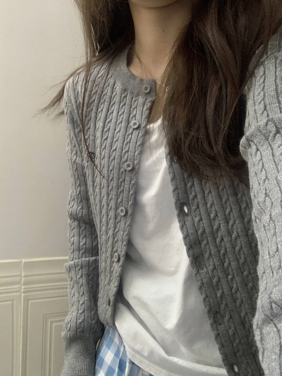 买到了满意的灰色毛衣开衫~