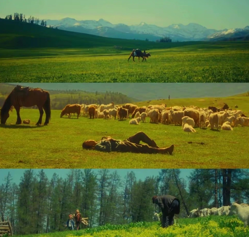 你能感受到在那戈壁滩上,绿油油的草地,还有那雪山和树林,每一眼都是那么美,那么有诗意,足以让人忘掉世俗的羁绊。