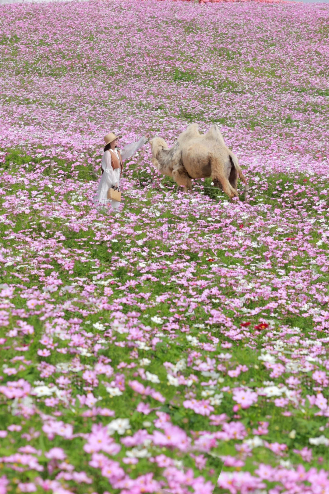 景区门口➡️经过一片池边金鸡菊➡️萌宠牧场(遛娃很推荐➡️乘坐小火车2站台格桑花海下车(还可骑马赏花,cool)