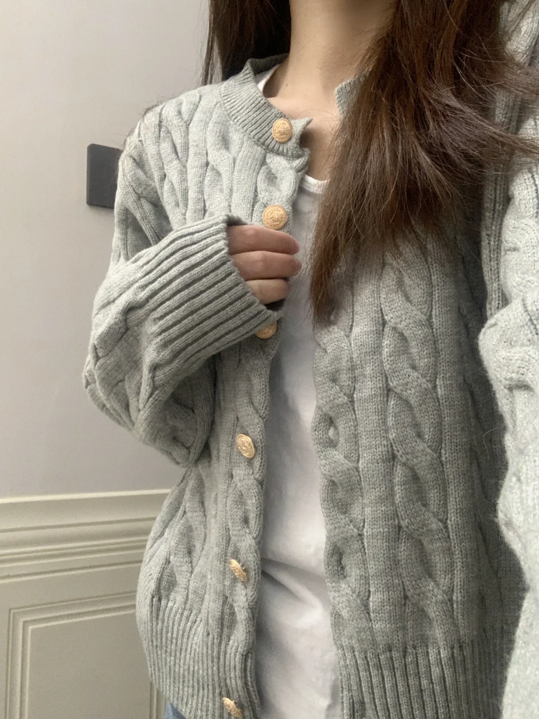 买到了满意的灰色毛衣开衫~