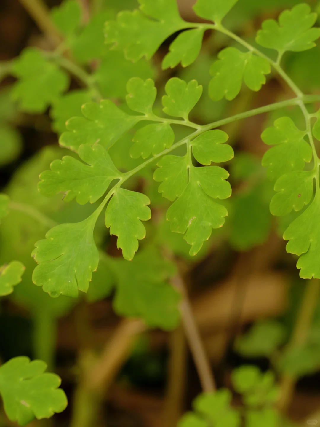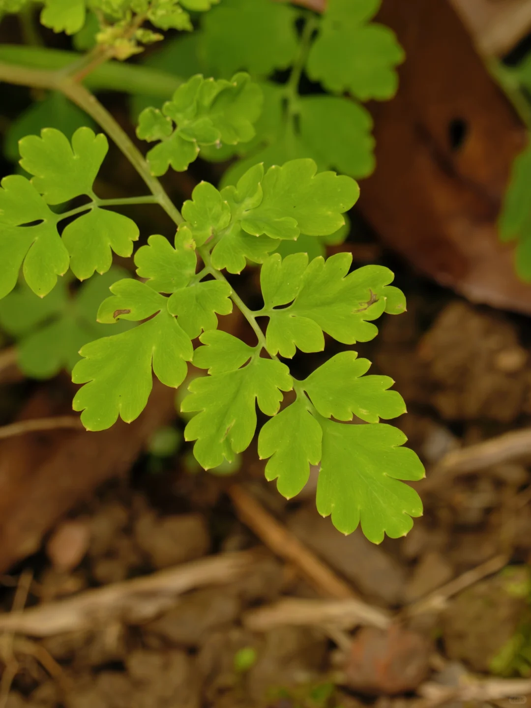 叶: 基生叶早枯;下部茎生叶长15-10厘米,具长柄,叶长7.5-15厘米,二回羽状全裂,一回羽片3-5对,具短柄,二回羽片1-2对,近无柄,卵圆形,长2-2.5厘米,基部楔形或平截,二回3裂或具3-5圆齿状裂片,裂片宽卵形;