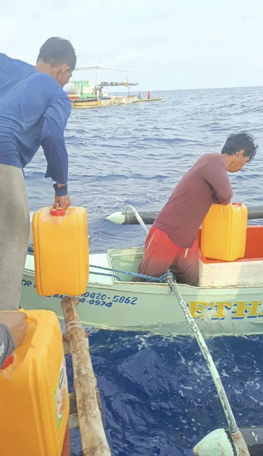 水猴子们冲闯黄岩岛的破船,根本就没能闯入黄岩岛水域,连黄岩岛的礁石都没有看到。 刚出菲律宾领海就做鸟兽散了,大多数破船四散而去。 最后剩下的几艘比较胆大的菲律宾破船,航行到了距离黄岩岛25海里(46公里)的位置,进行了燃料和补给发放。然后他们发现这里竟然有一艘中国海军的052D型导弹驱逐舰。 求水猴子们的心理阴影面积? #人爱礁破局# #媒体:中方对菲律宾耐心不是无止境#
