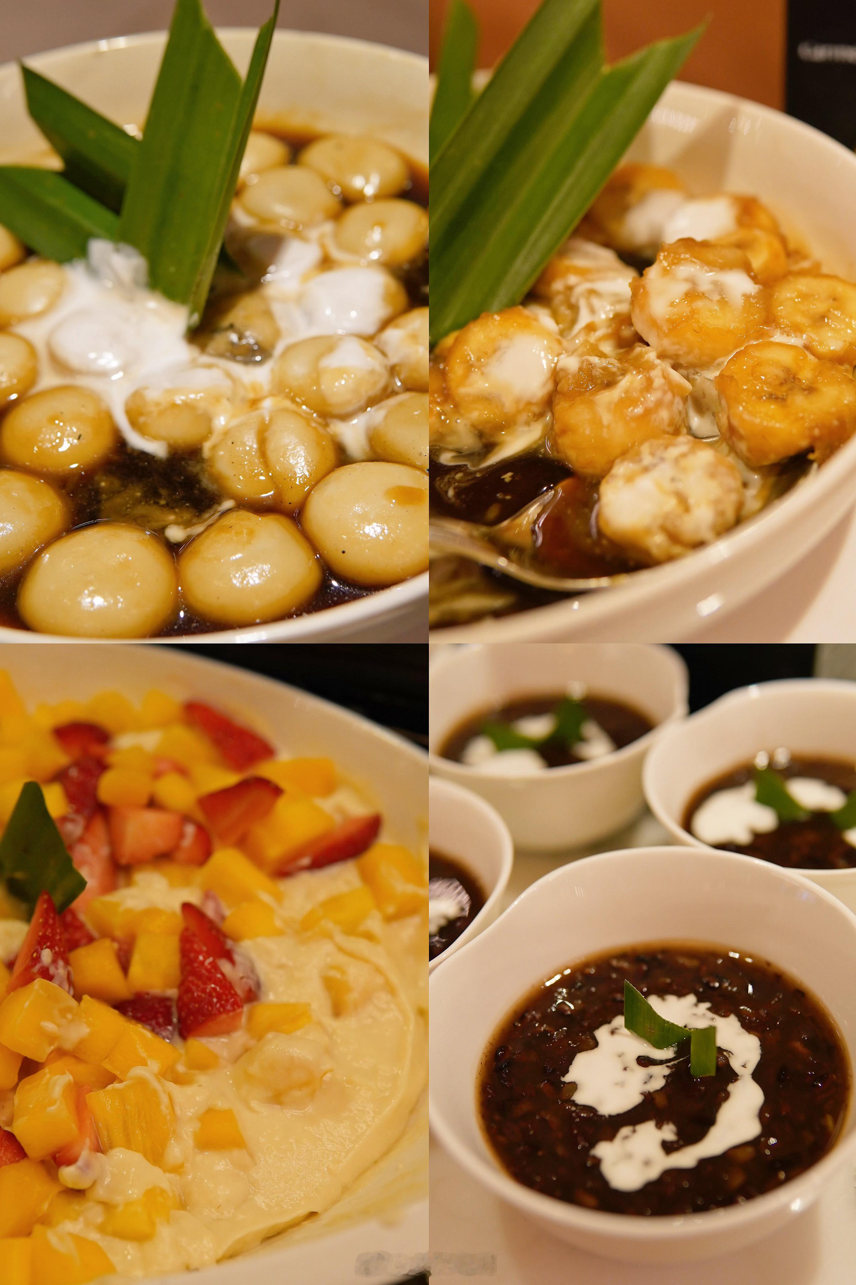 甜品也有特色款:米布丁、百香果炖蛋、榴莲水果泥,斑斓奶冻,满满热带风情。加上香溢餐厅本就很丰富的自助餐品种,真是眼花撩乱,只嫌自己胃太小。