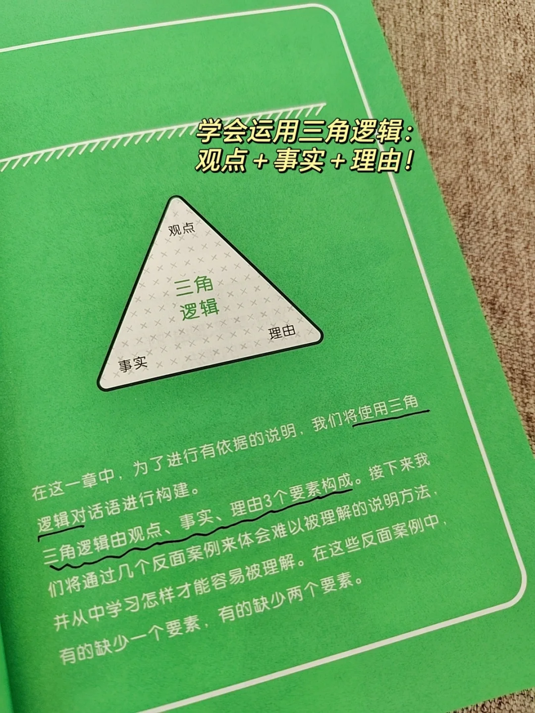 ✔️运用“三角逻辑”:观点,事实,理由…对话语进行构建,让你言之有据,不再被人.质疑。