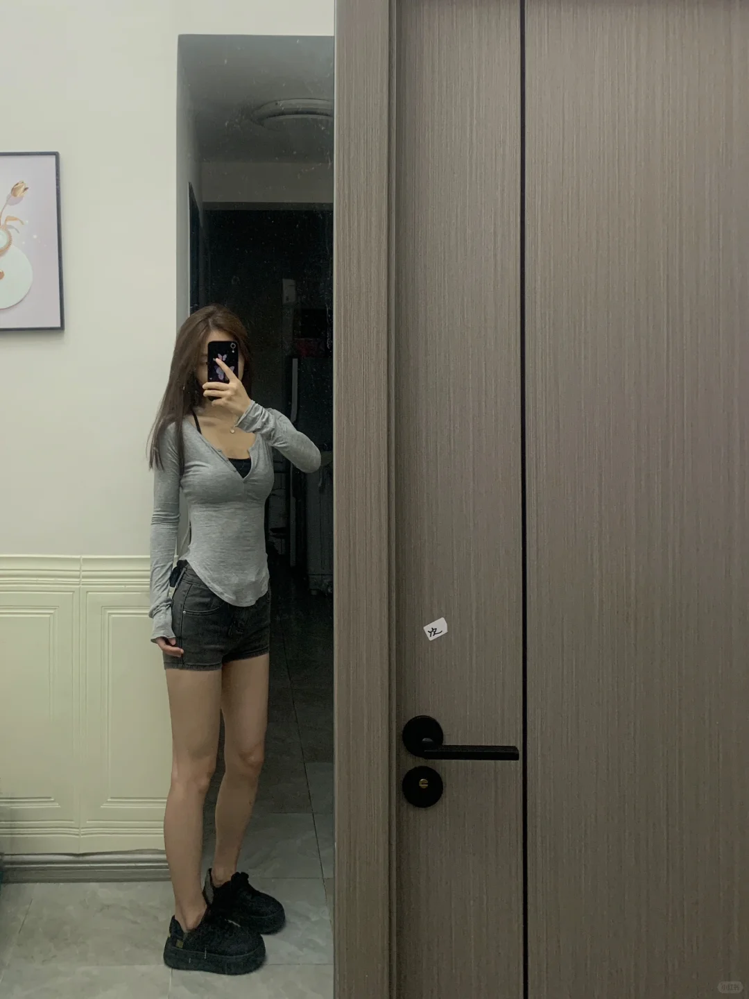 配的是一个带丰臀板型的牛仔裤,不漏P P,真的很显身材!