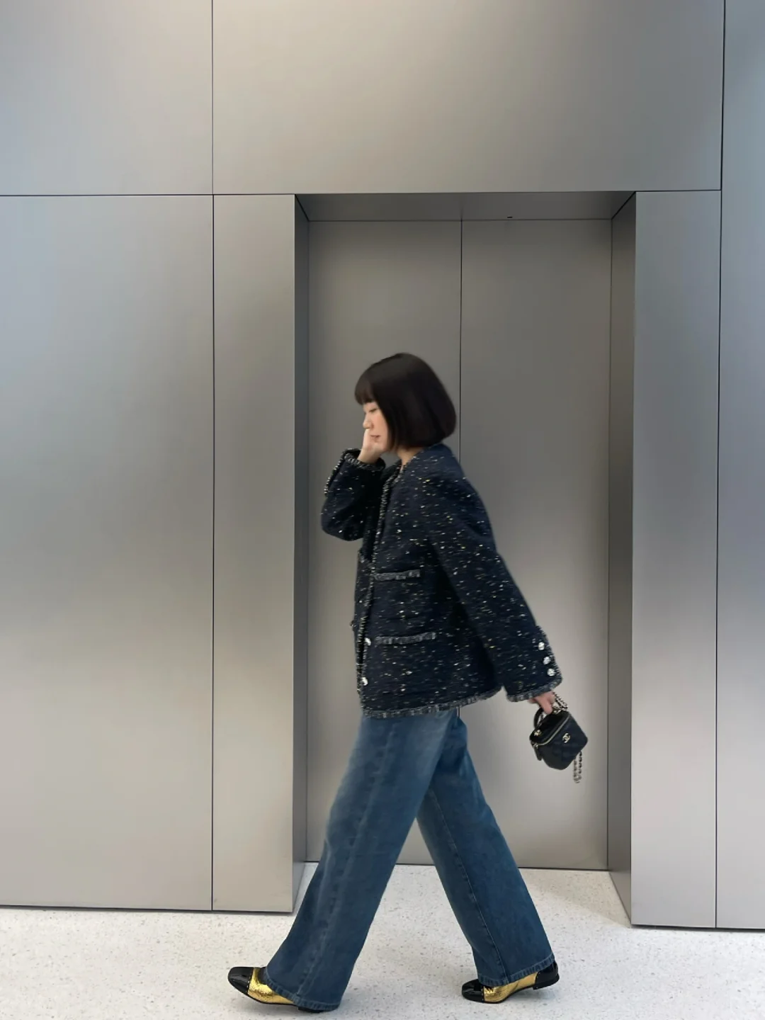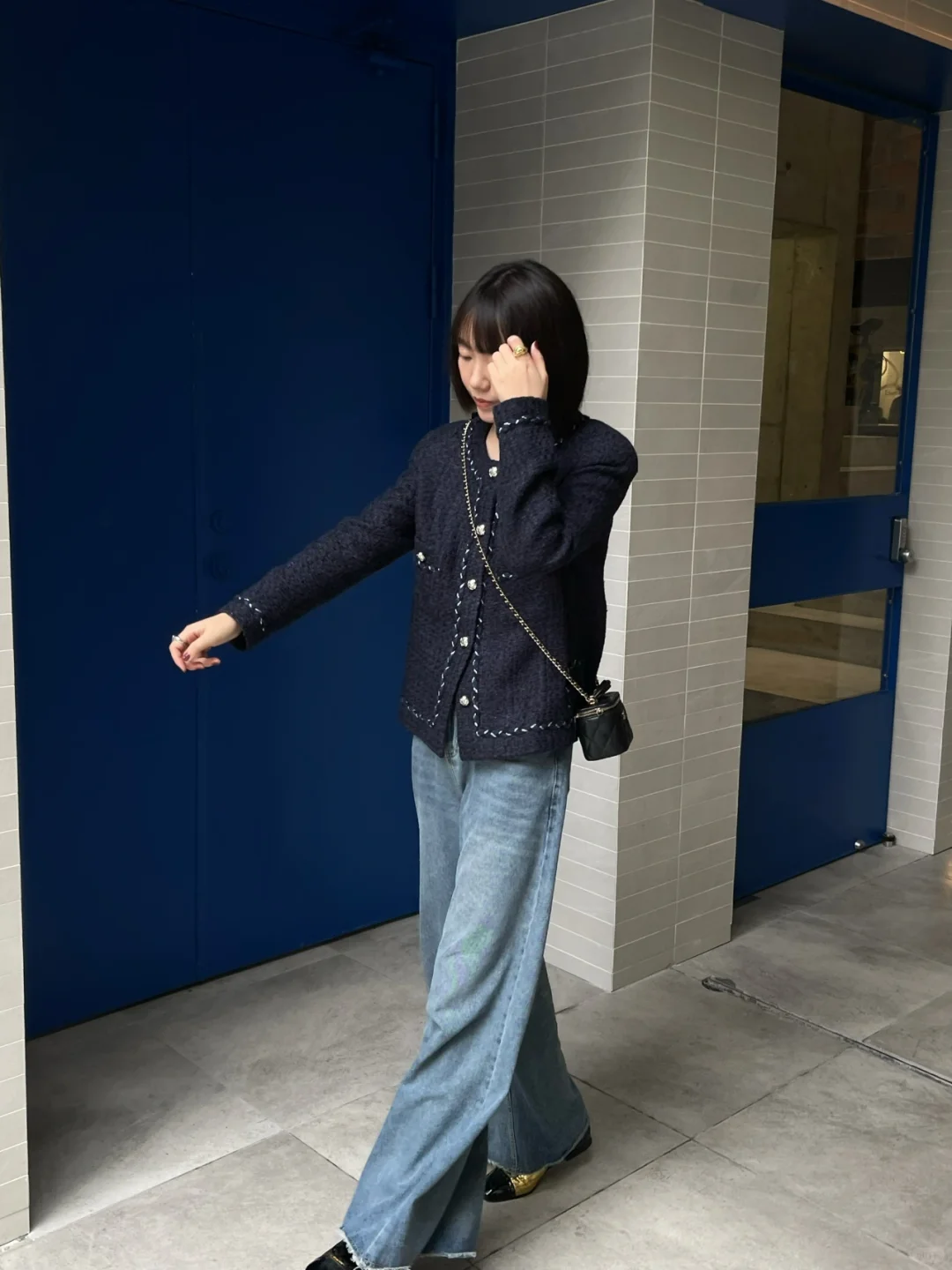 牛仔穿搭,地铁自拍