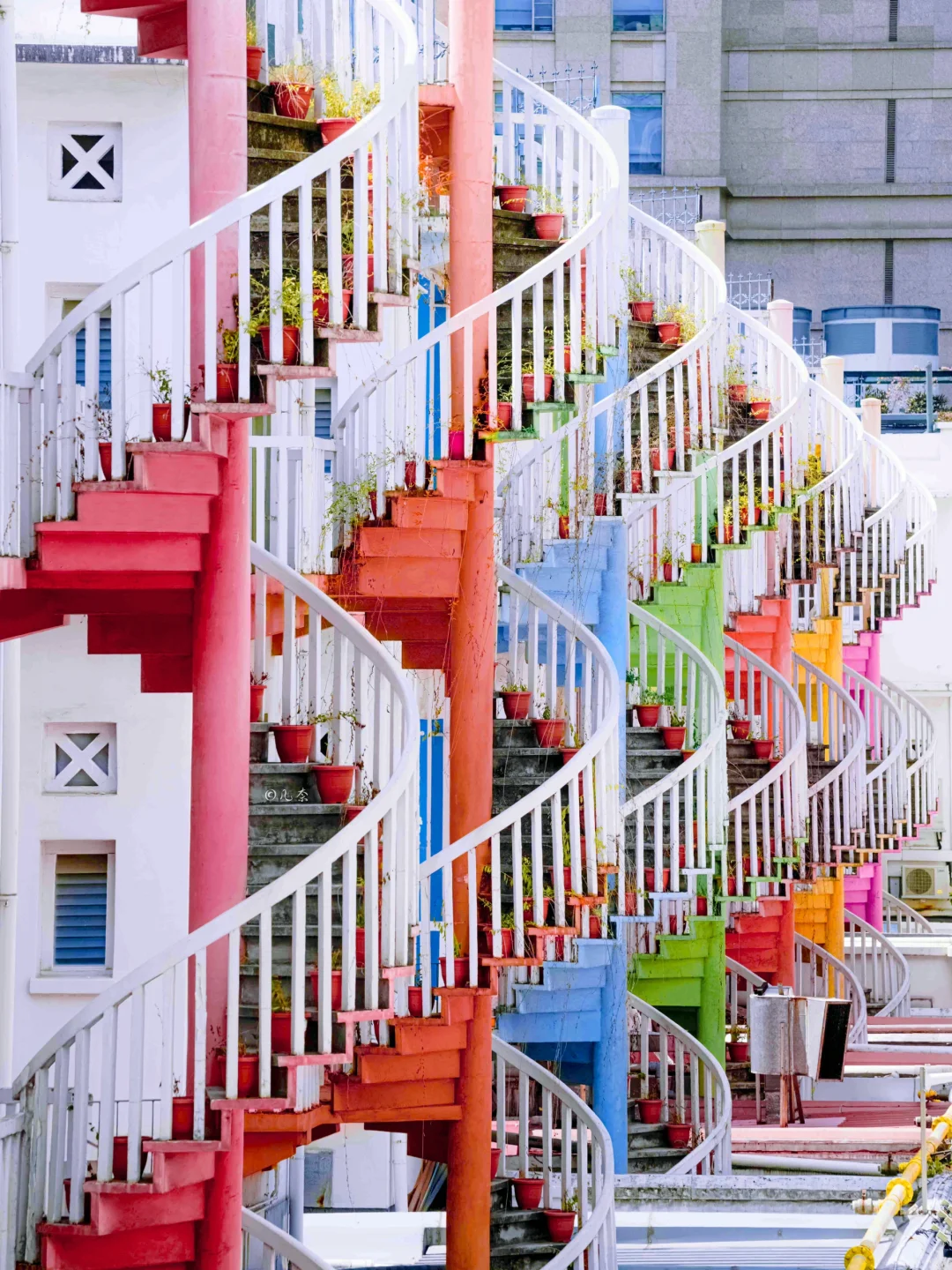 彩色墙面真是让人眼前一亮,仿佛走进了彩虹世界,美得让人心碎
