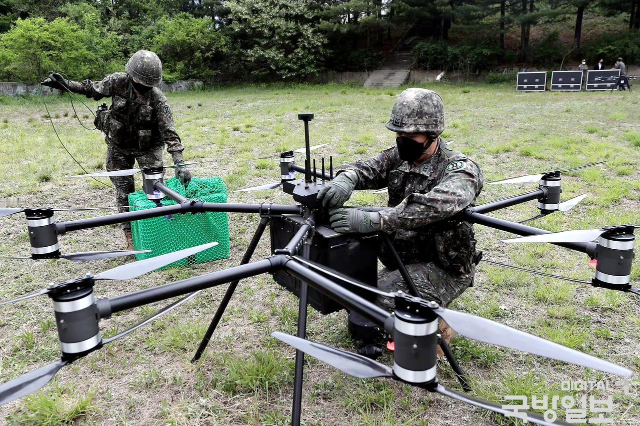 东北亚超级大国陆军装备的八轴重型无人机,特种兵使用的,可以投掷炸弹,也可以由无人机运送物资。 有一个疑问,棒槌们打仗的时候就这么扛着箱子走?