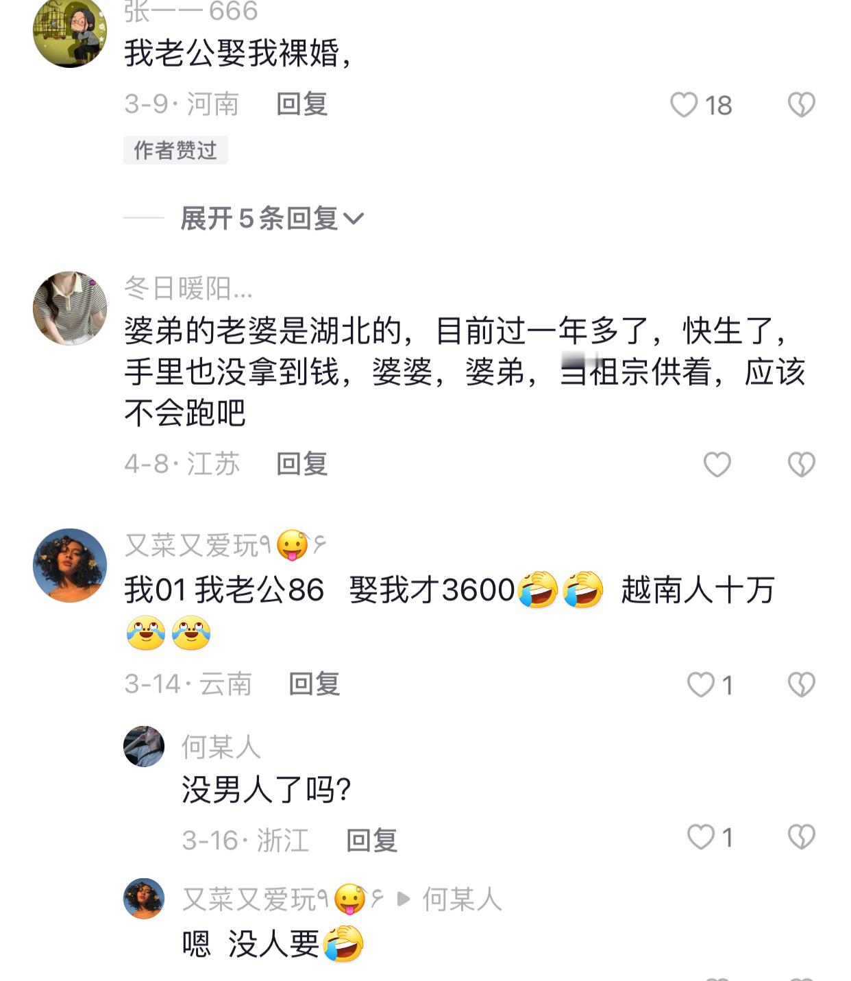 投稿,“唔……越南媳妇可能会跑这事是事实,要不也没有这么多抖求助的,也没有这么多想/建议给越南媳妇上锁的……没必要提到越南媳妇会跑的新闻/话题就说xxn急了……当然如果只是想去母留子或者gay找形婚,从性价比角度可能确实高点,只是要小心一些专业骗婚的,别跑了又发抖求助”