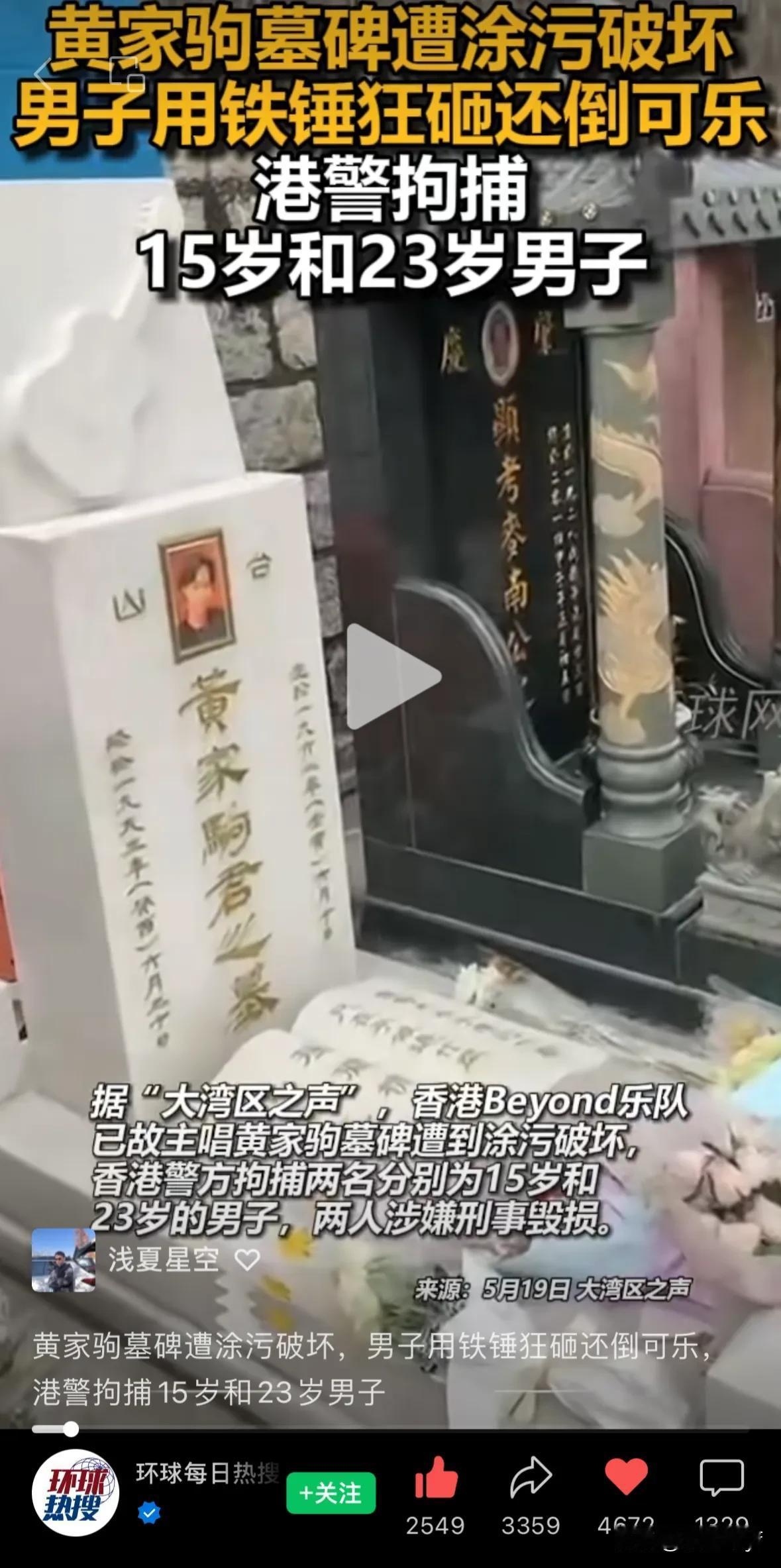 黄家驹是我最敬仰的音乐人,看到他的墓碑遭受两男子的破坏,实在痛心不已!你可以不喜