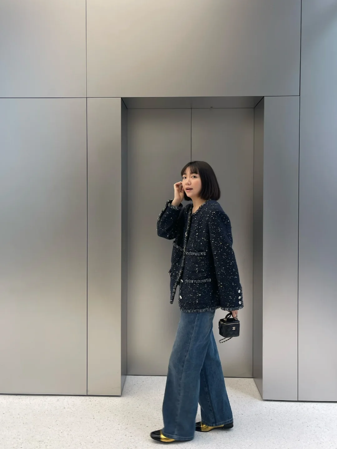 牛仔穿搭,地铁自拍