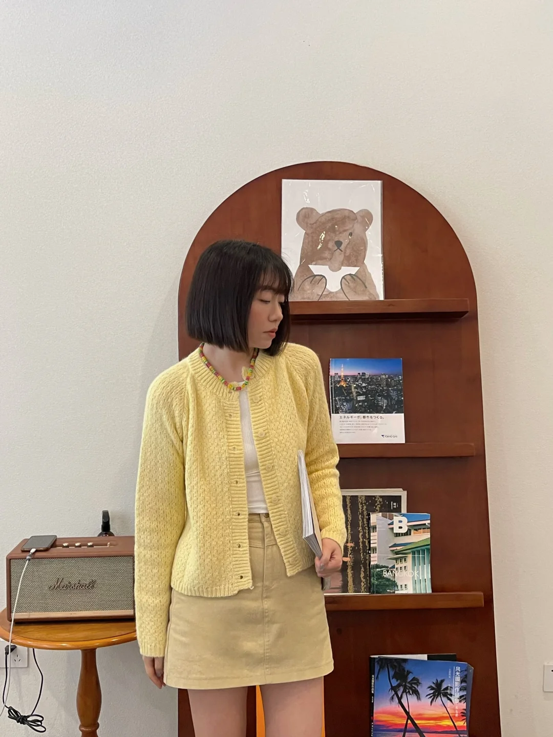 夏天在自然公园里,穿白色背心搭配黄色牛仔裤,妥妥就是甜美少女本女。白色背心清爽又