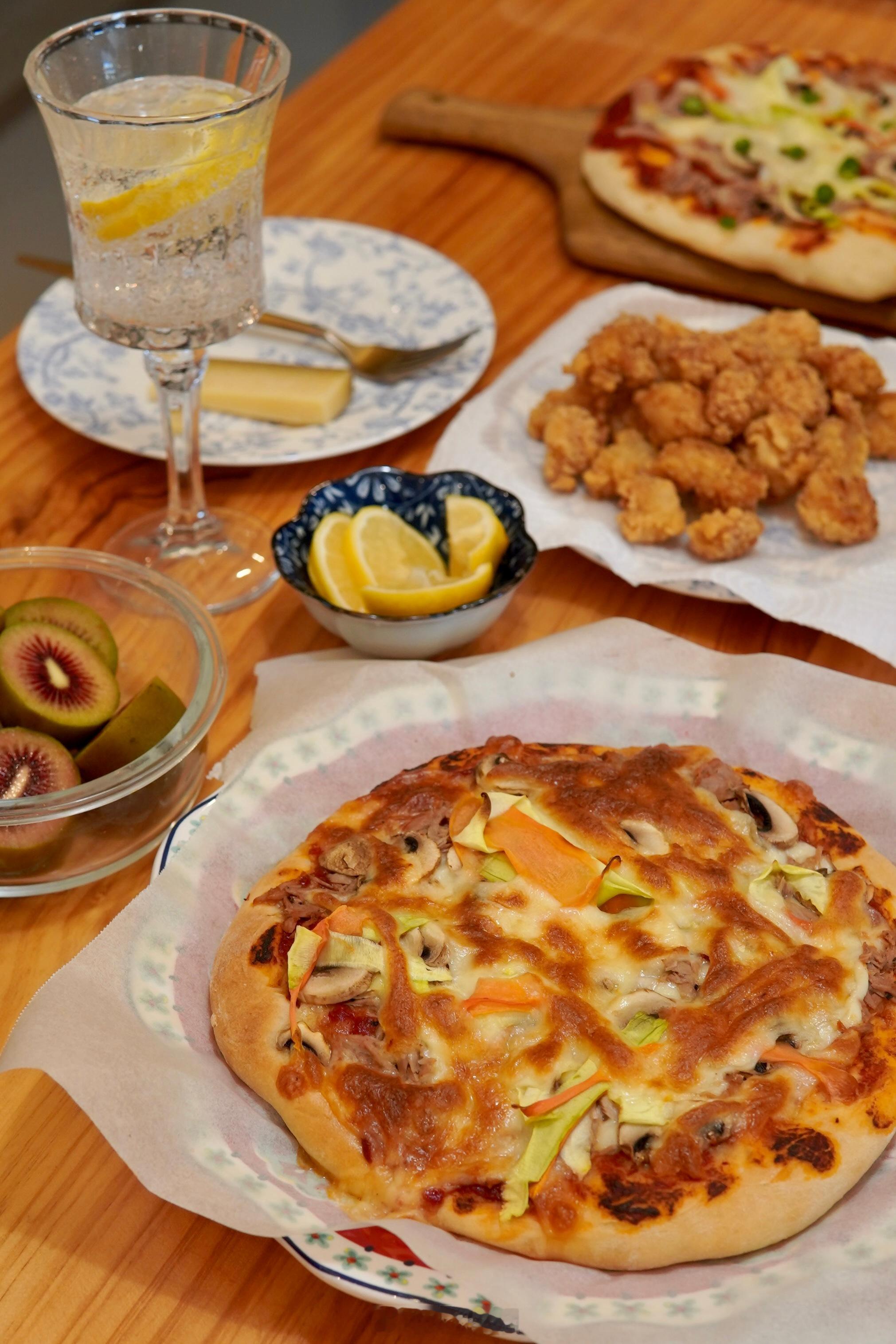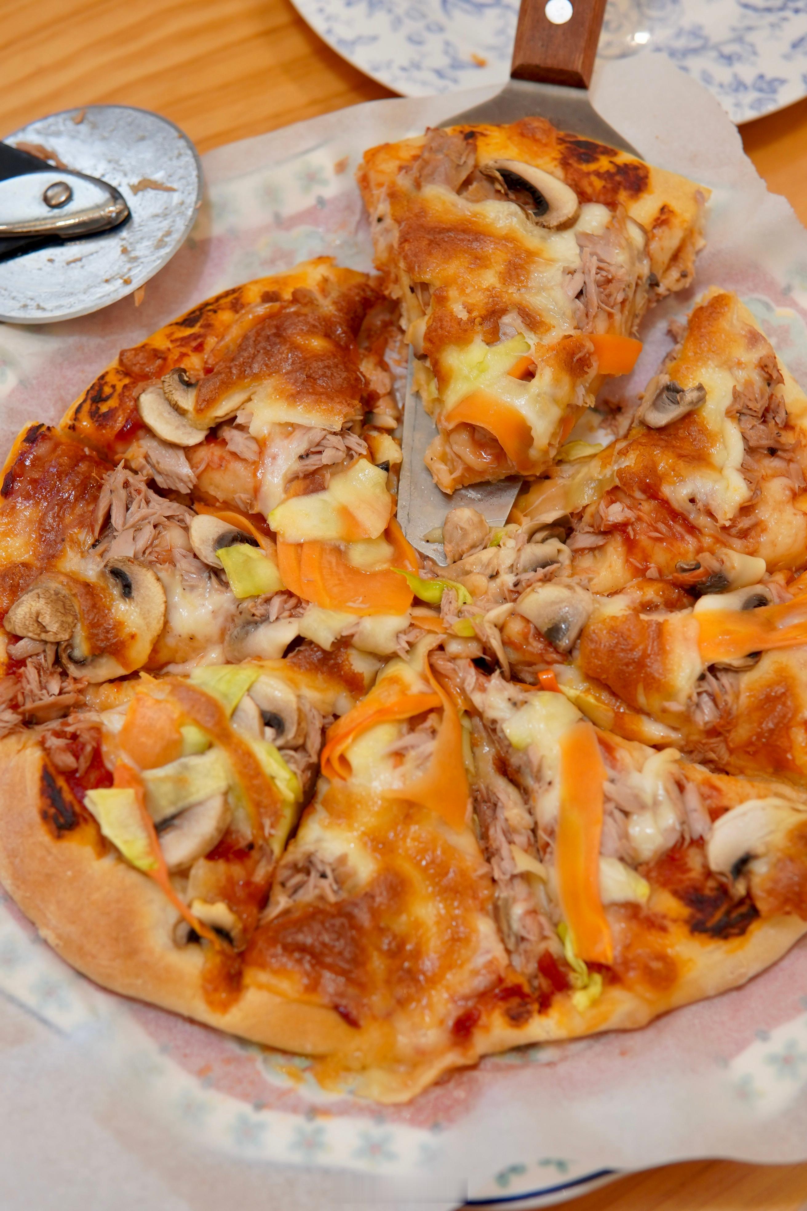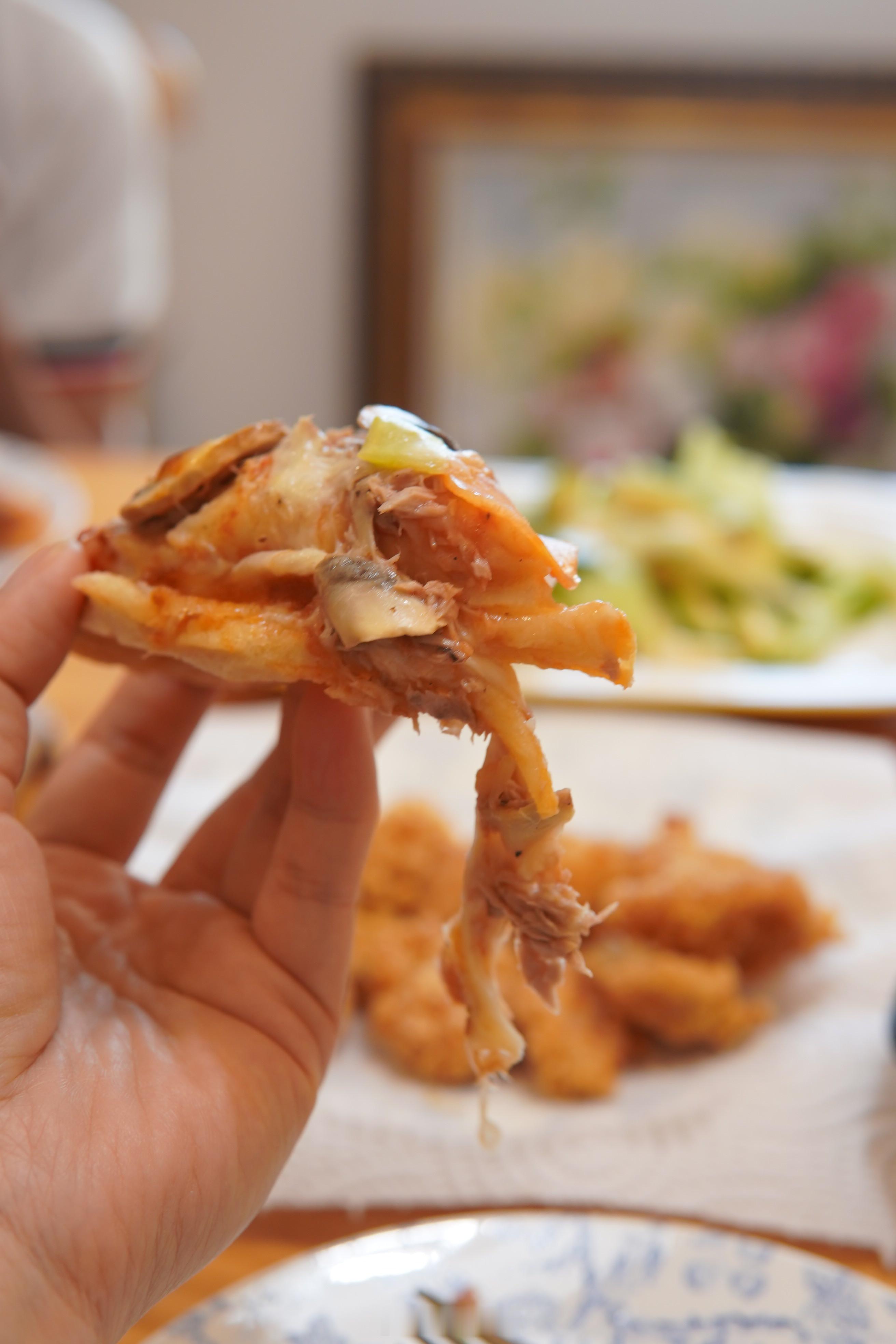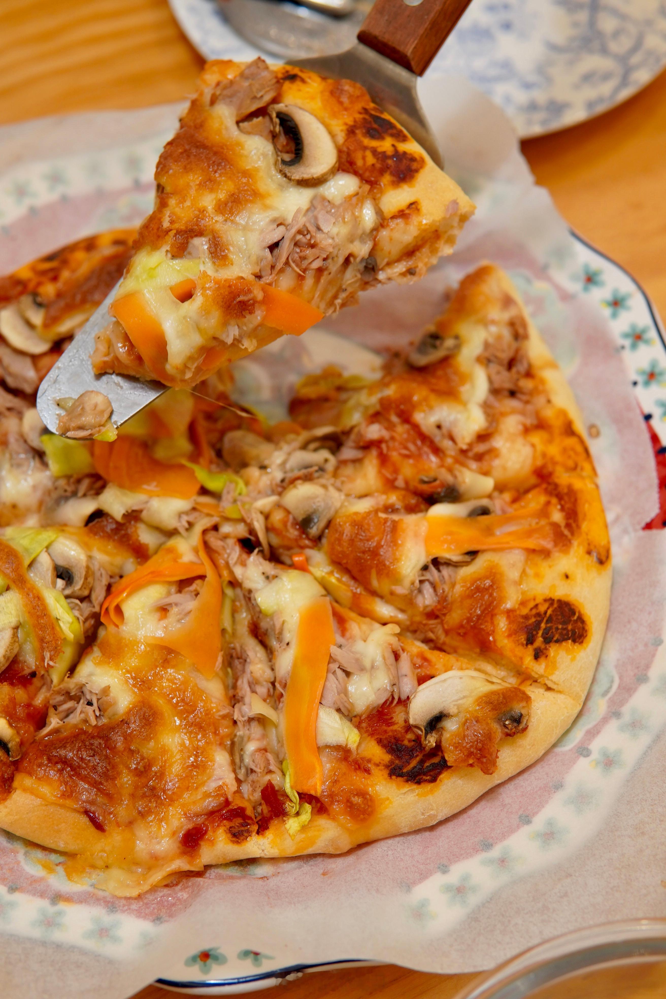 昨晚做了披萨,晨曦兄弟说特别好吃,面饼儿特柔软。金枪鱼没啦,最后做了个素披萨,子曦说比肉的还好吃。
