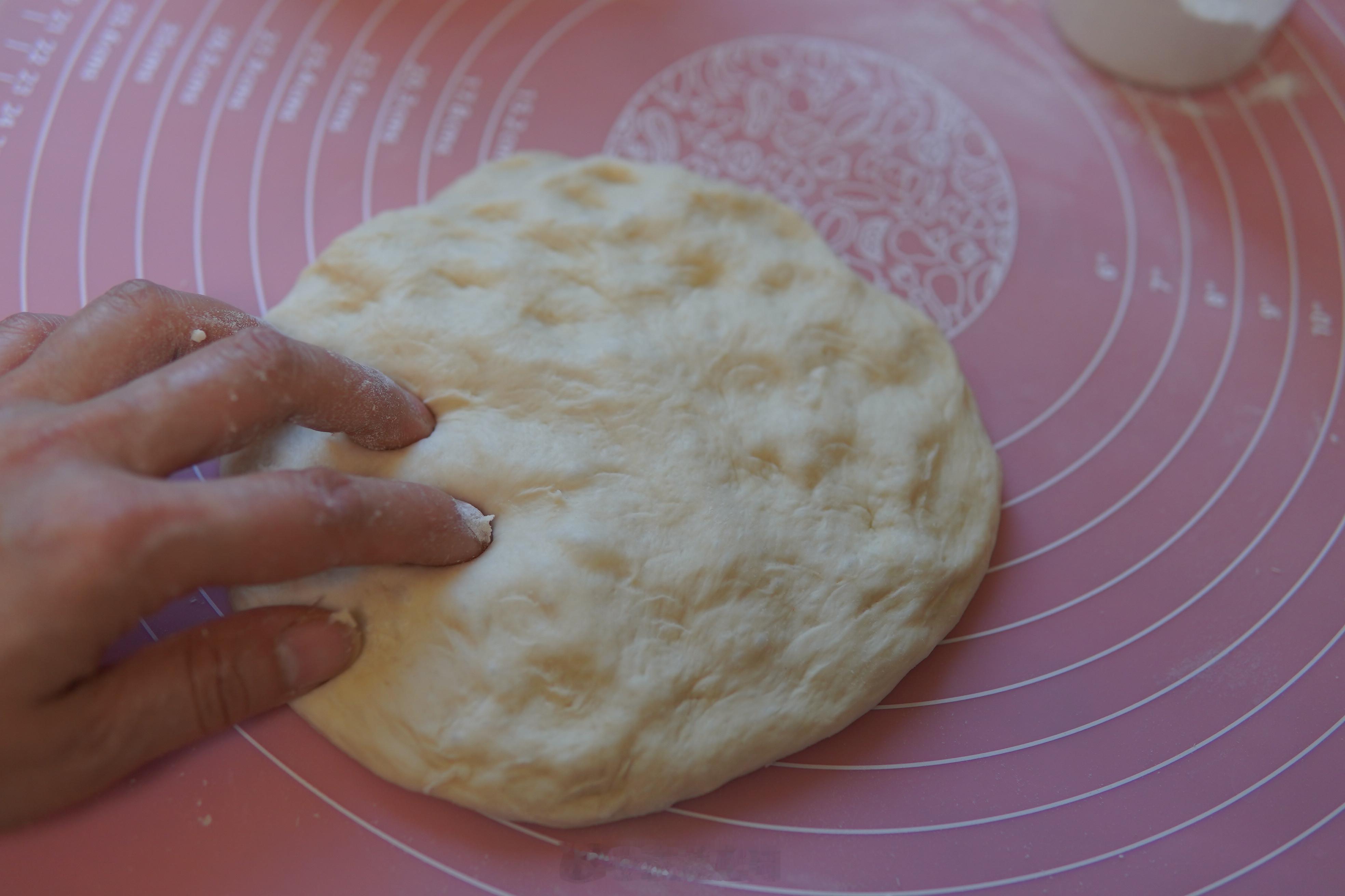 一次发酵后分三份儿,不要过度按压酵母泡,用手整形。