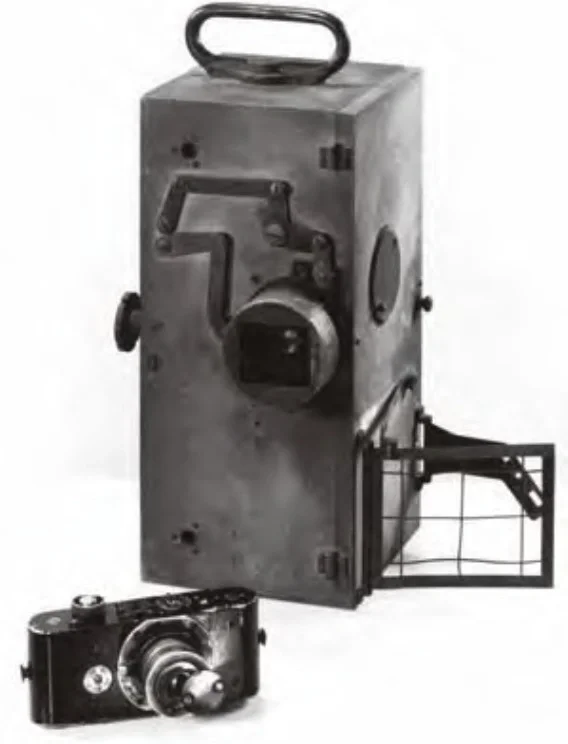 图9:由奥斯卡·巴纳克设计的35毫米胶片相机(左下),用于为电影摄影机进行曝光测试