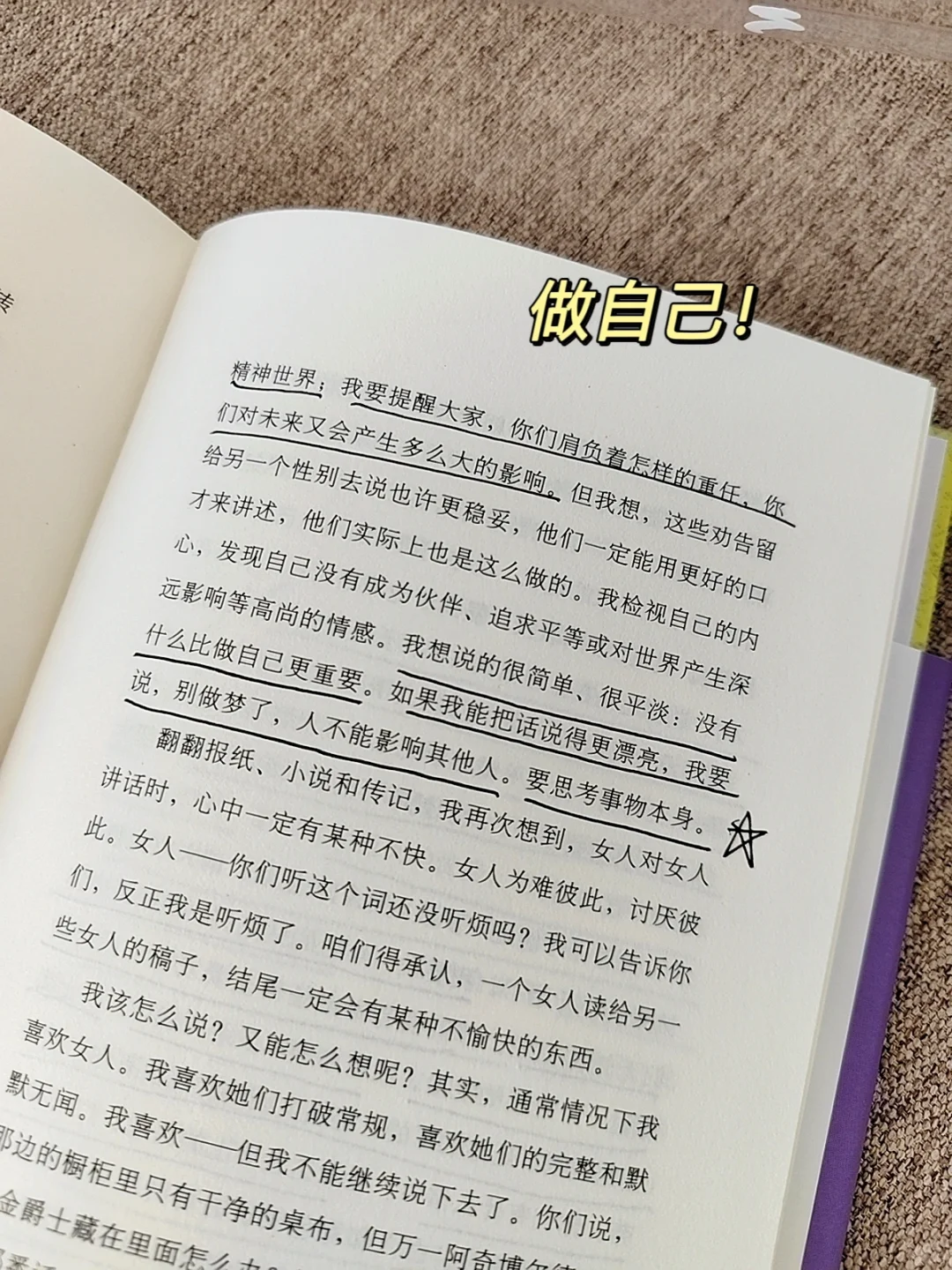 啊啊啊啊啊啊!劝所有女生,都给我去读伍尔夫!她的思想,她的智慧,她那振聋发聩的文字,影响了千千万万的女性,帮助她们走向物质独.立、精神独.立!!帮助她们找到自我,学会做自己,成为自己!