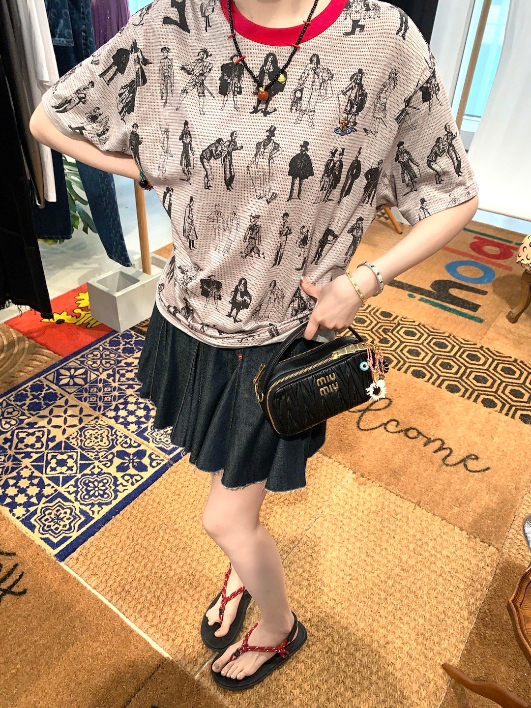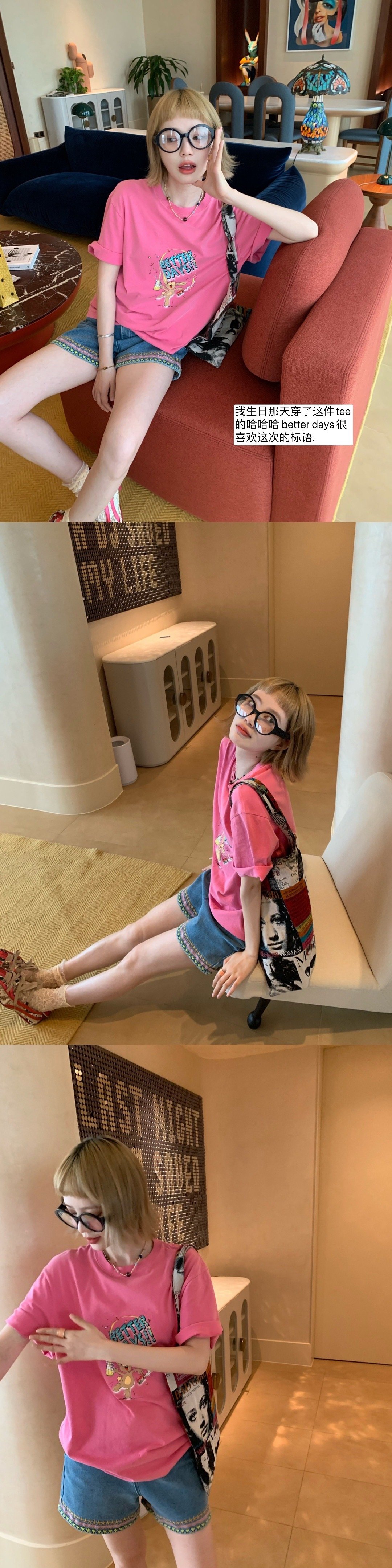 想发这件腊肠修勾一件t都是手工的 她领圈和袖边都是手工钉珠的 五颜六色的珠珠小花