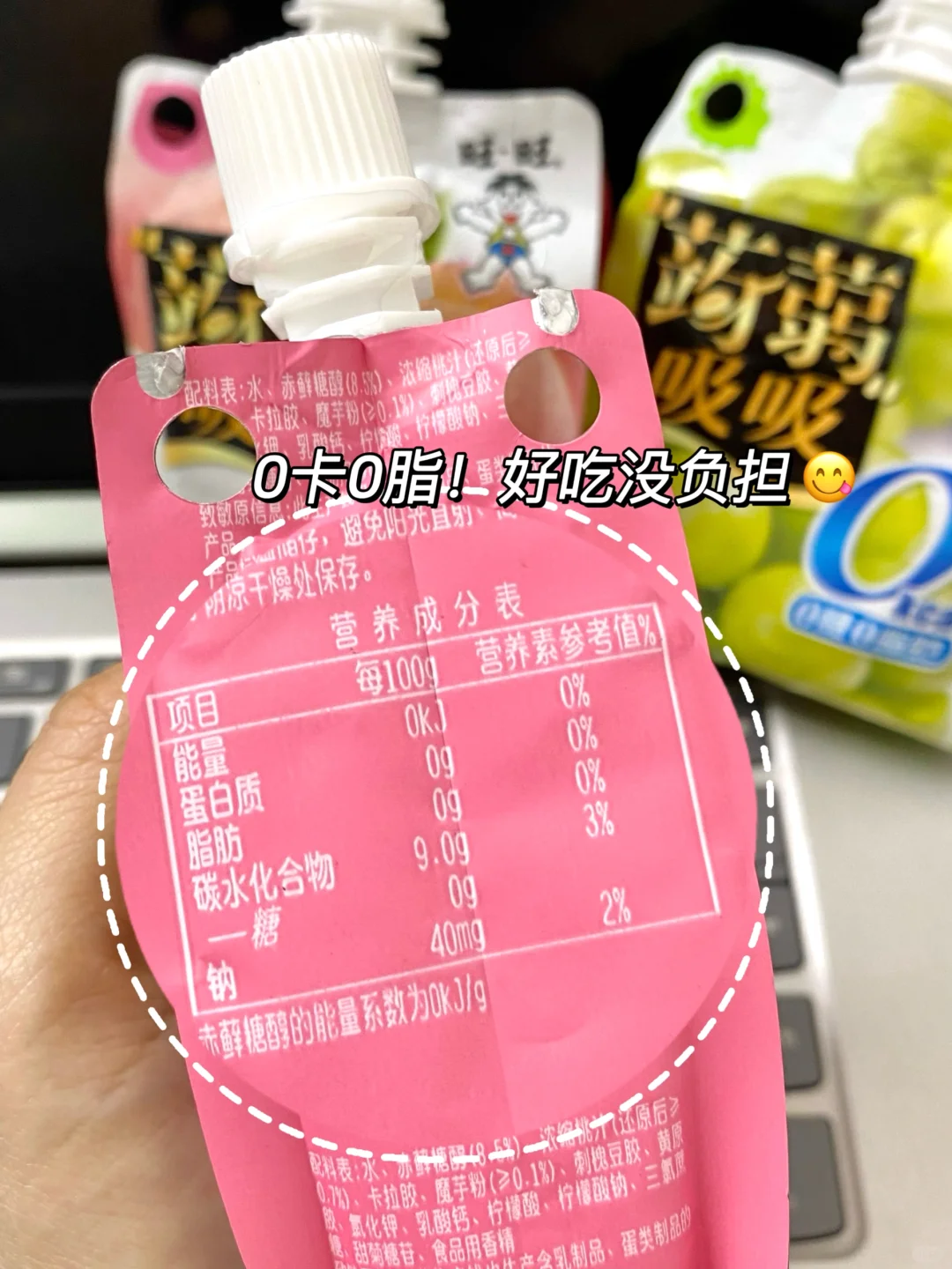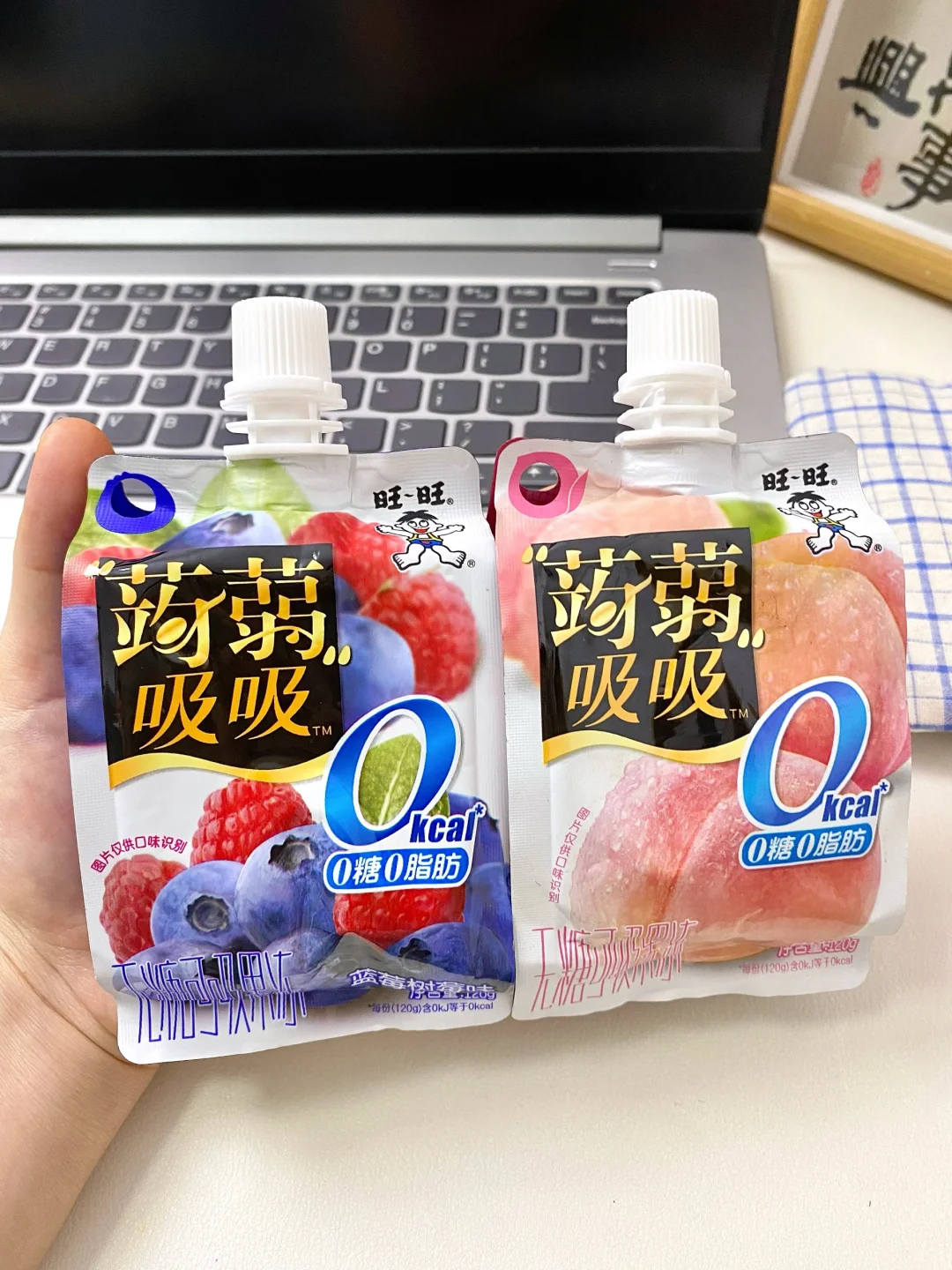 这个旺旺0卡蒟蒻吸吸太绝了! 吃起来超Q弹,很好嗦!添加了真实果汁,果汁味很浓!!夏天一定要冷藏一下,更清爽更好吃! 果汁感巨足!四个口味直接闭眼入! 本蜜桃控坠喜欢白桃味,开袋就是浓郁的桃香,一口气吸吸吸,好像在空口喝白桃汁! 还是0卡0糖0脂的,我平时下午两三点饿了馋了就会吃一两袋!减脂期嘴馋根本不用忍,炫它就完事🤣 特别添加了蒟蒻…懂得都懂!增强饱腹感的同时还没有负担! 减肥嘴馋的姐妹可冲~和绿茶一起,清爽解腻又轻松0卡!
