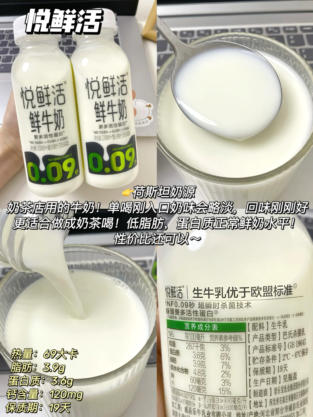 奶茶店用的牛奶!单喝刚入口奶味会略淡,回味刚刚好,更适合做成奶茶喝!低脂肪,蛋白质正常鲜奶水平!性价比还可以~保质期19天