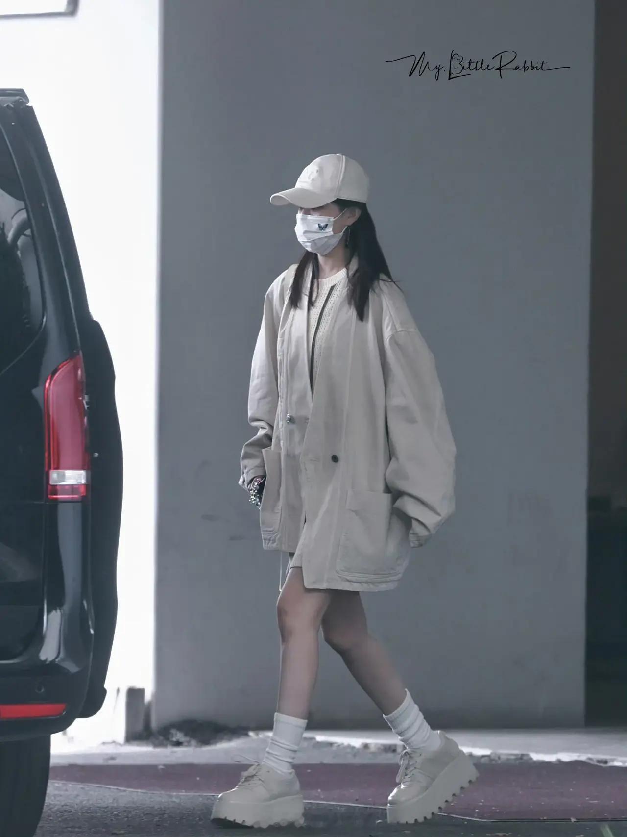 赵丽颖上海到达,长款外套➕厚底鞋,露腿装感受到夏天的气息了,私服好舒适,好好看。