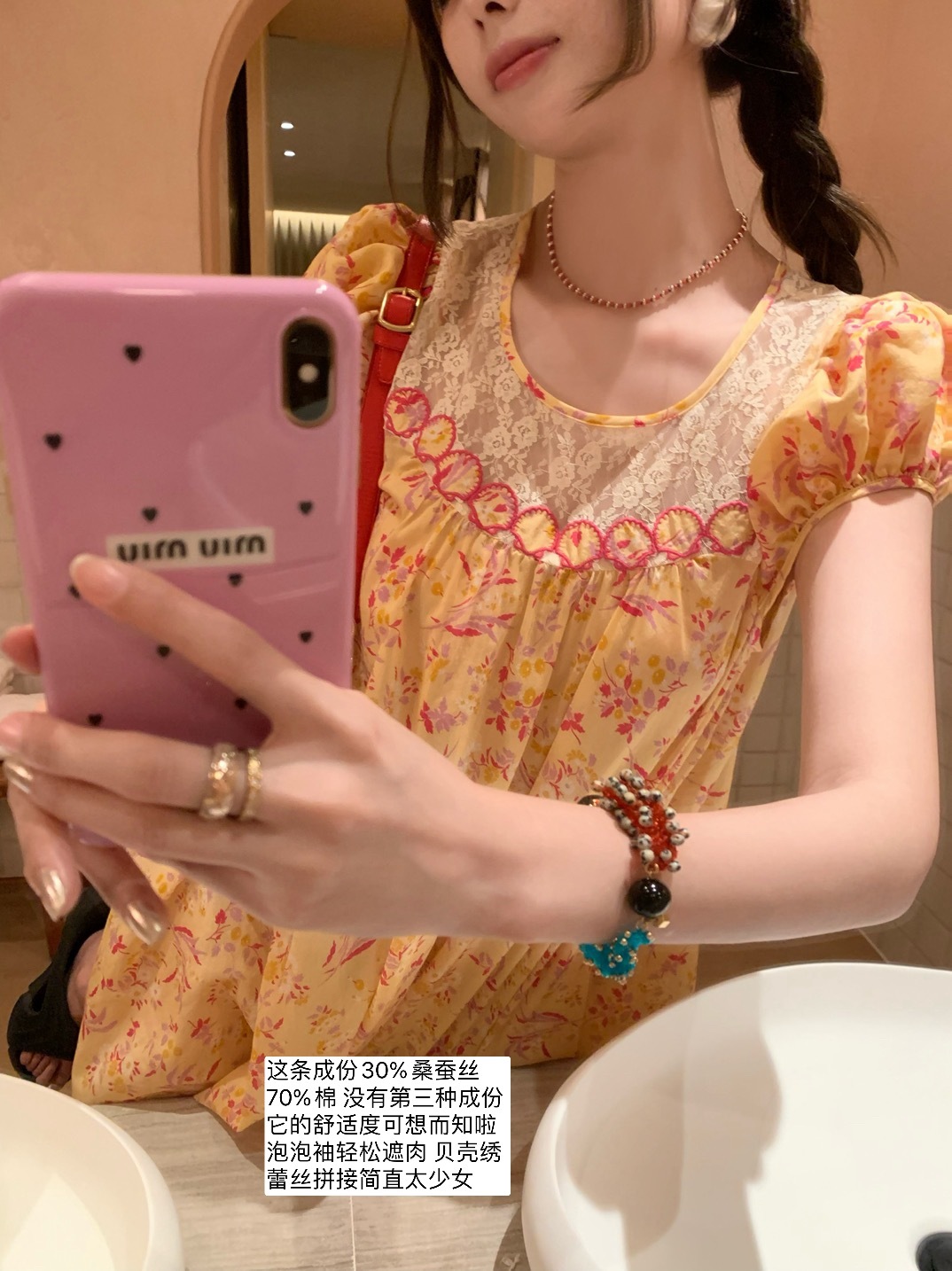 想发这件腊肠修勾一件t都是手工的 她领圈和袖边都是手工钉珠的 五颜六色的珠珠小花