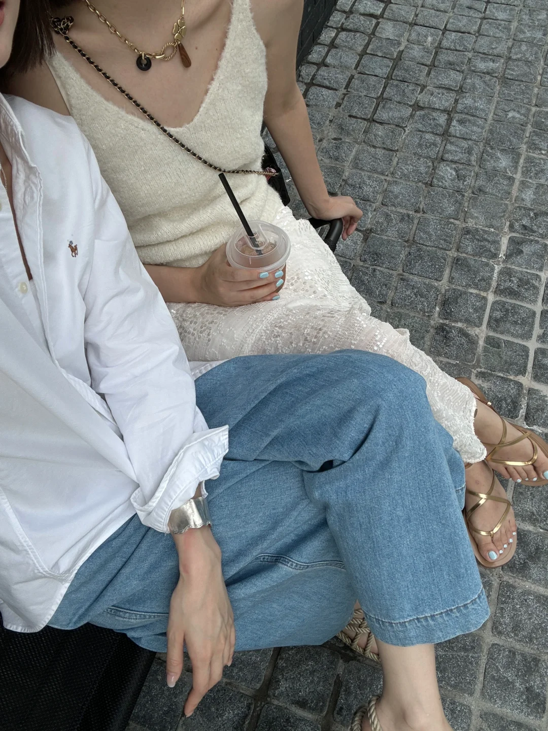 夏天在自然公园里,穿白色背心搭配黄色牛仔裤,妥妥就是甜美少女本女。白色背心清爽又