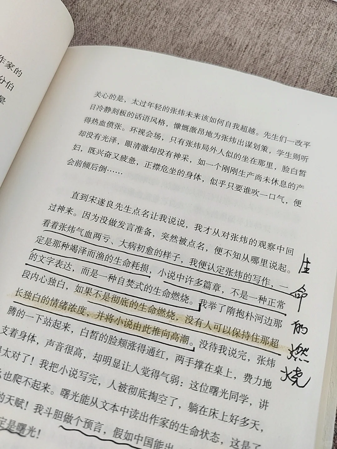 ✔️从张炜身上,看到他写完《古船》时气血两亏,大病初愈的样子,原来《古船》的创作,已经耗费了他全部的心力,他那种自.焚式生命燃烧的写作状态,让我看到了,原来为了一件自己喜欢的事情,真的可以做到燃烧生命的境界!