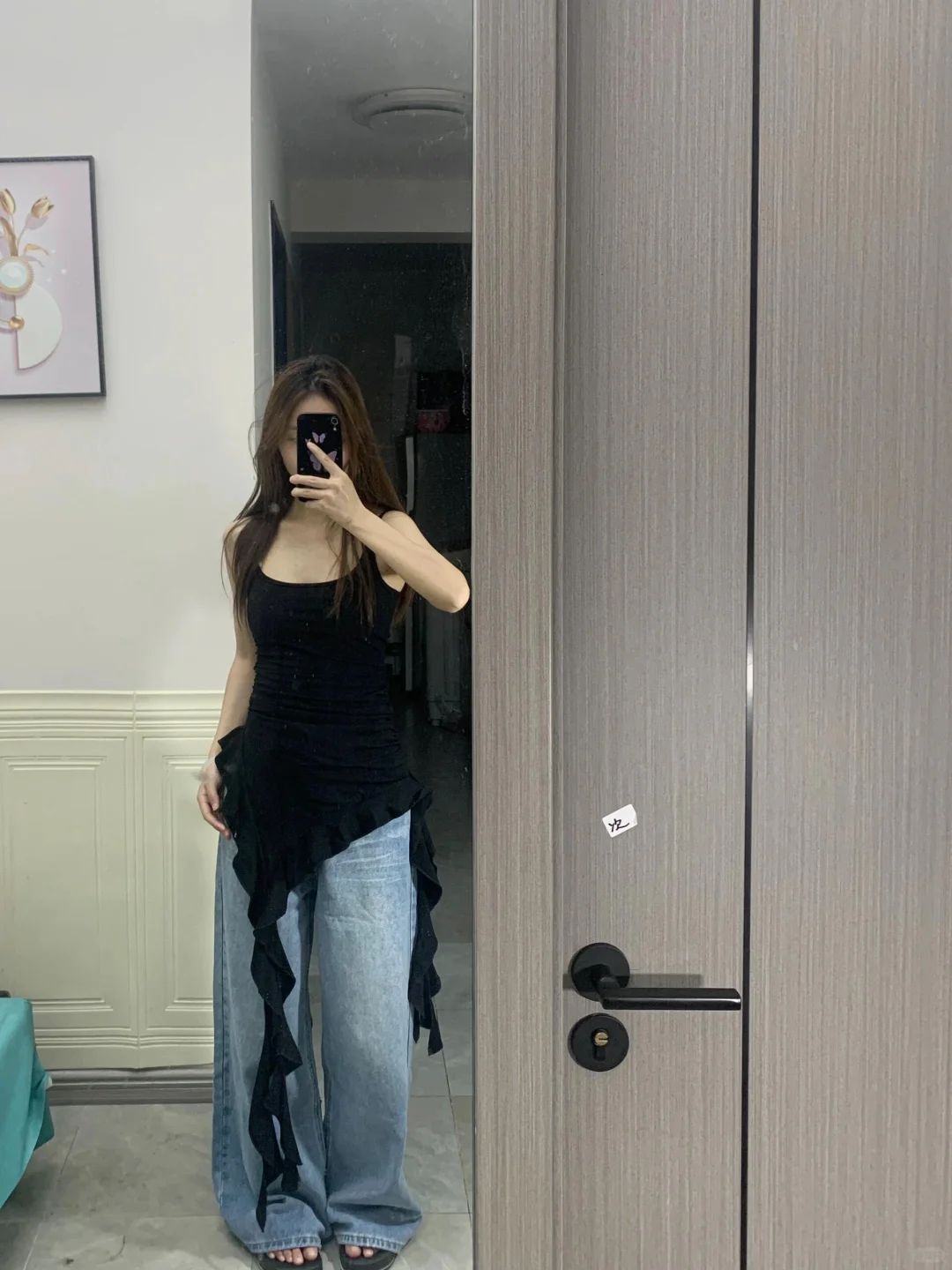 姐姐在溪边美得像幅自然画卷!黑色紧身衣勾勒出曼妙曲线,米色裤装衬得身姿挺拔,低丸