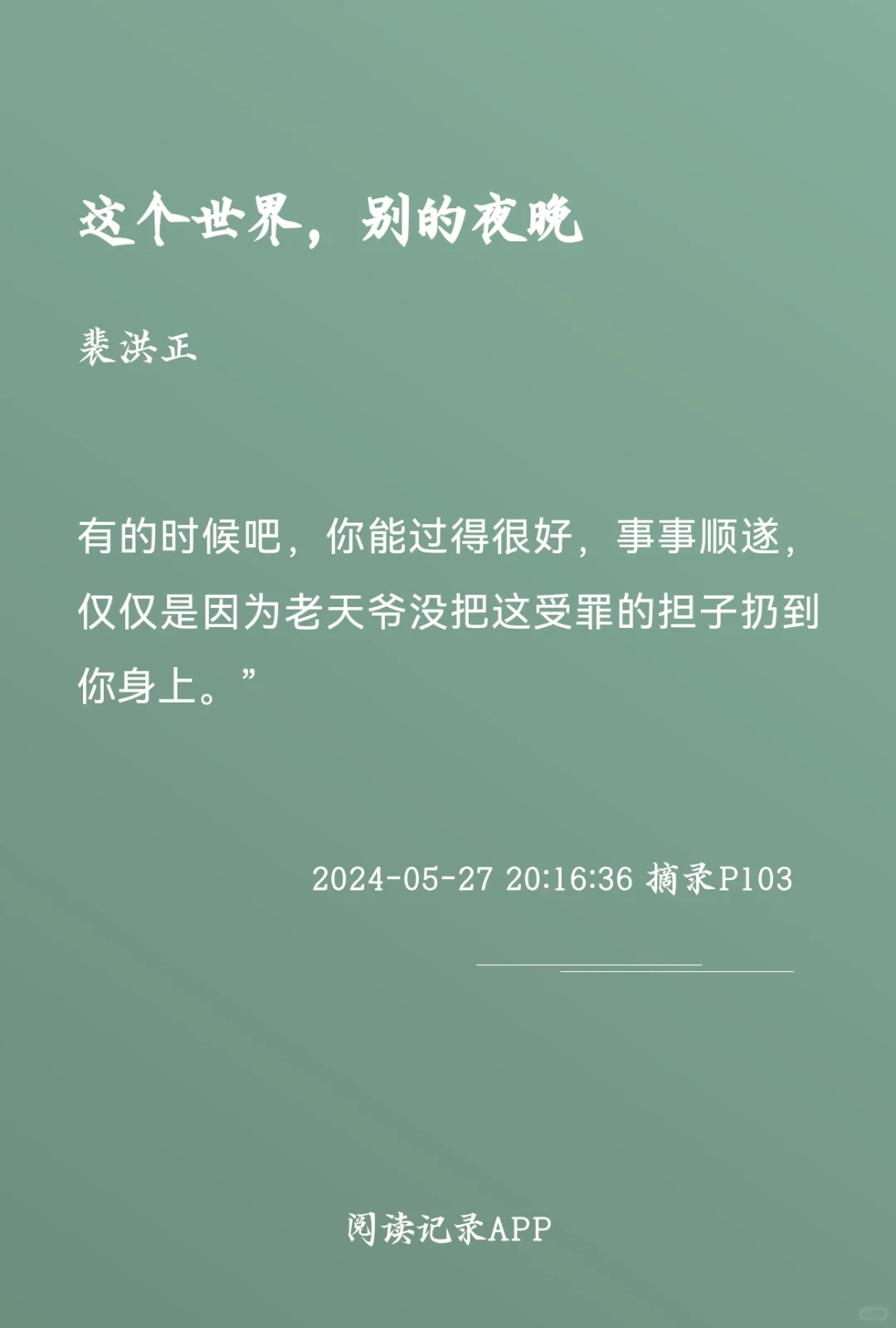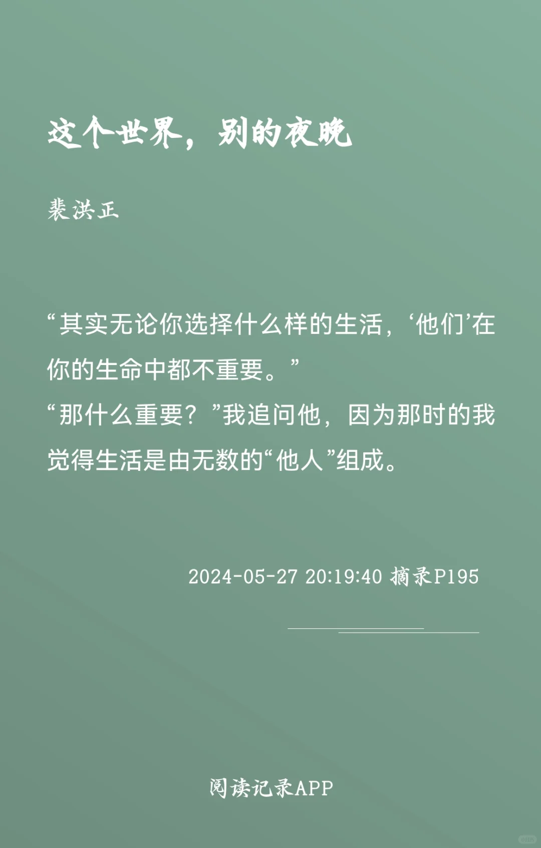 总的来说,《这个世界,别的夜晚》是一部充满力量与深度的作品。它让我们重新审视自己与他人的关系,以及我们如何面对生活中的困境与挑战。裴洪正以其独特的笔触和深刻的洞察力,为我们呈现了一个充满真实与情感的世界. 📖